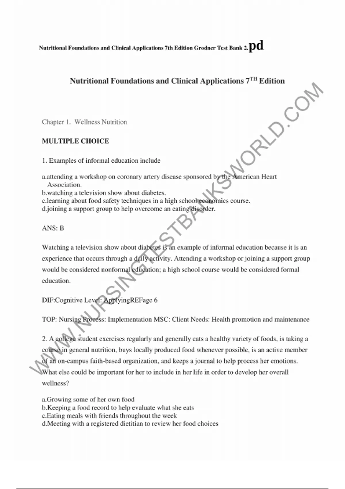 Test bank - Nutritional foundations and clinical applications 7th edition grodner