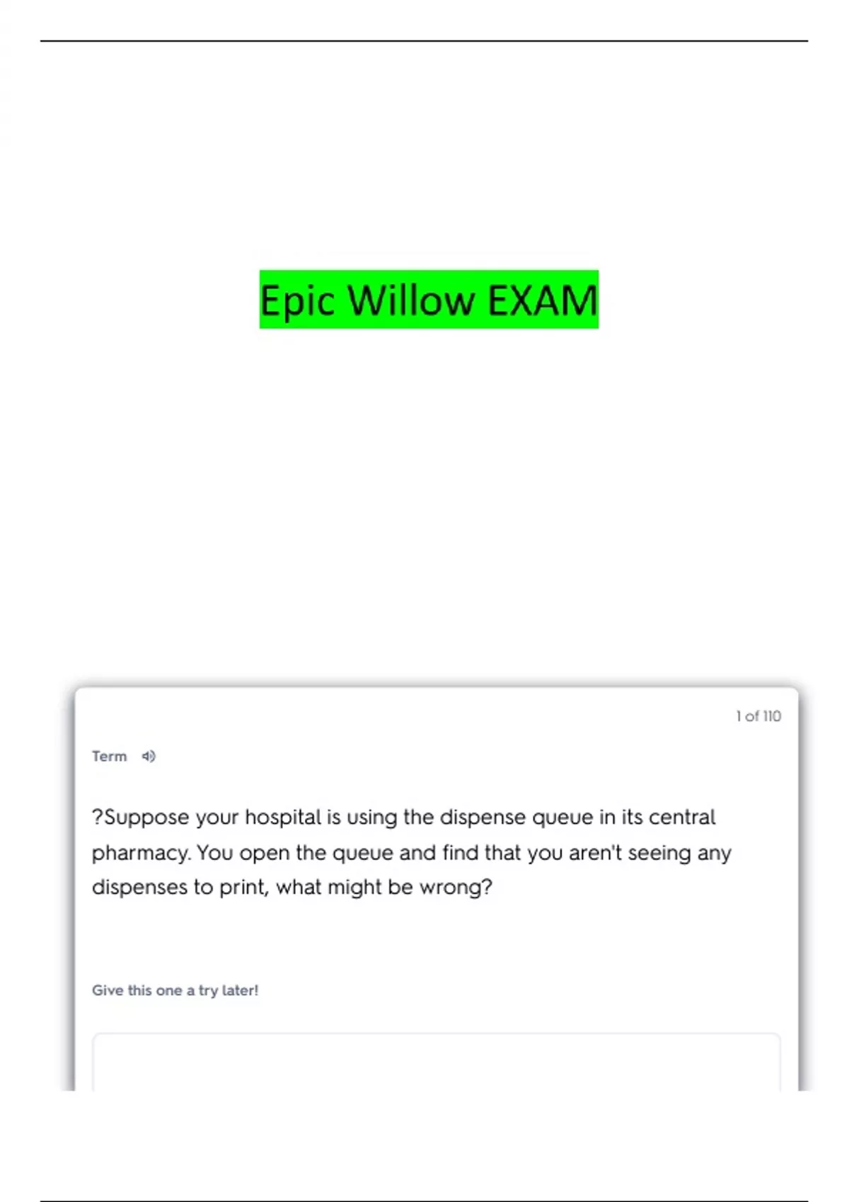?Suppose your hospital is using the dispense queue in its central