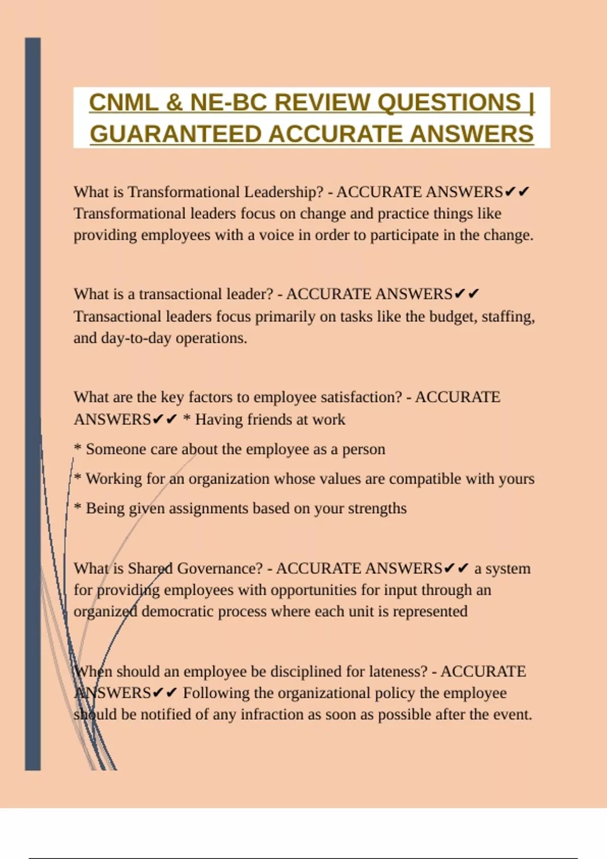What is a transactional leader? - ACCURATE ANSWERS✔✔