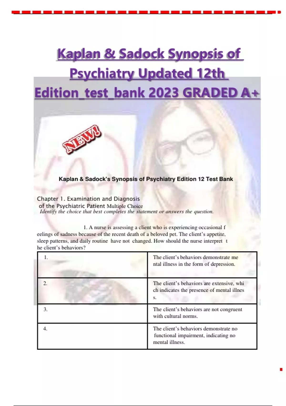 Kaplan & Sadock's Synopsis of Psychiatry Edition 12 Test Bank