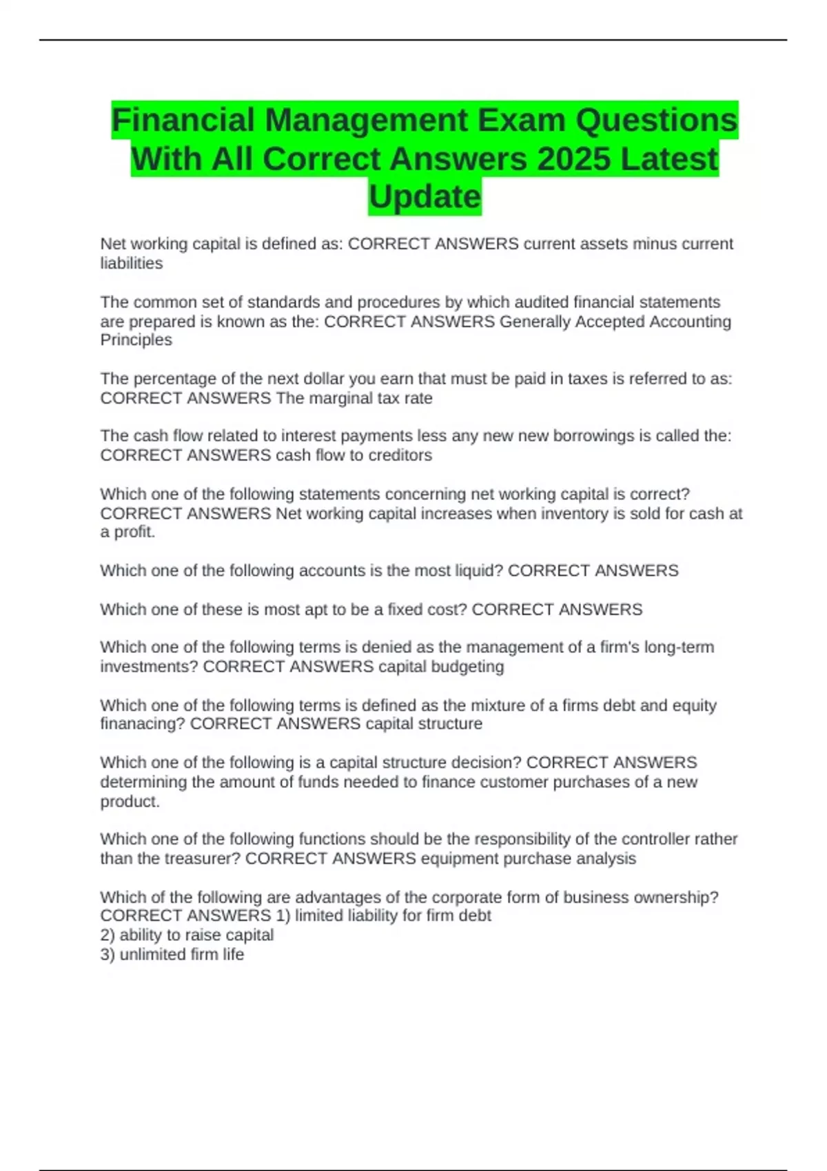 CORRECT ANSWERS Net working capital increases when inventory is sold for cash at