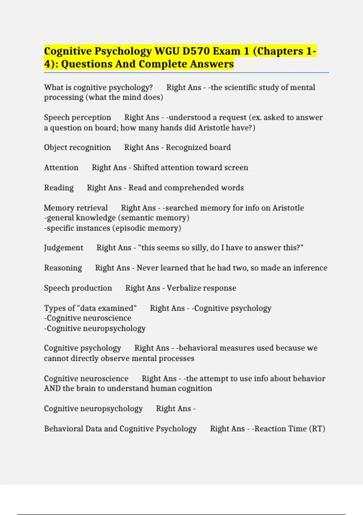 What is cognitive psychology? Right Ans - -the scientific study of mental