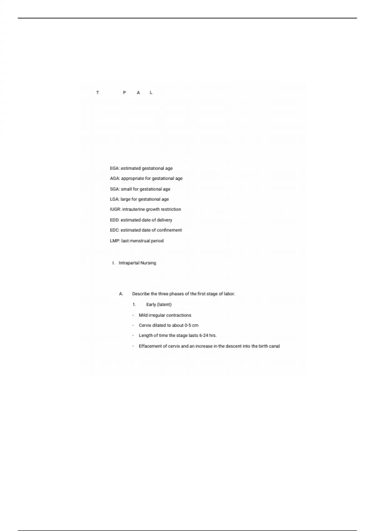 I. Intrapartal Nursing