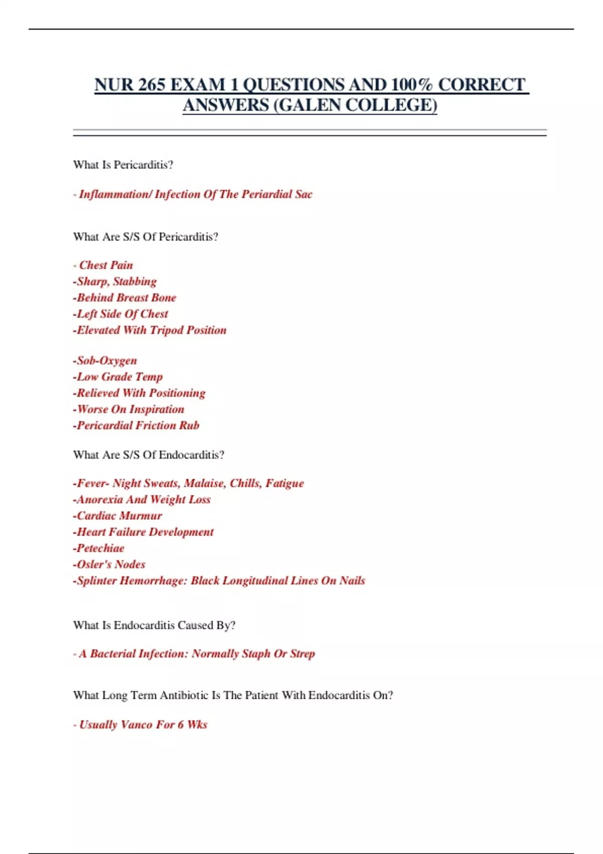 NUR 265 EXAM 1 QUESTIONS AND 100% CORRECT