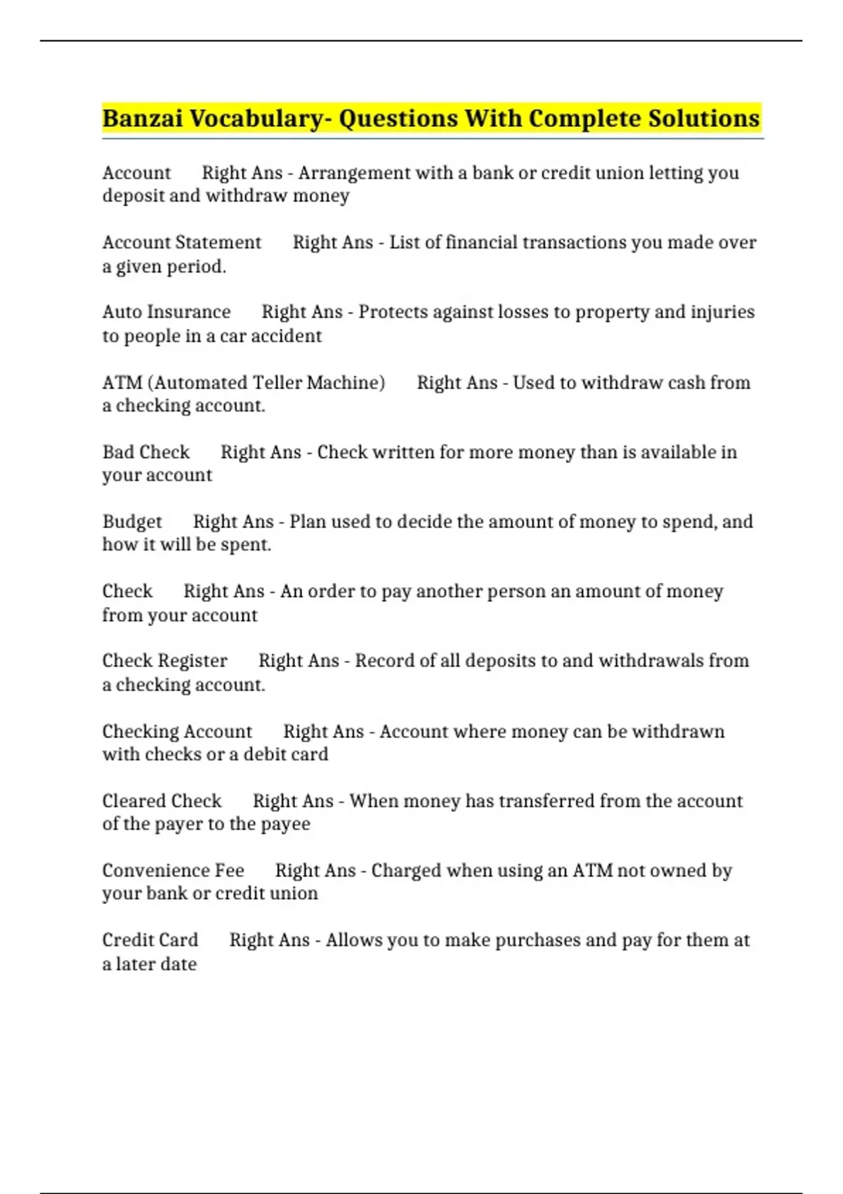 Check Register Right Ans - Record of all deposits to and withdrawals from