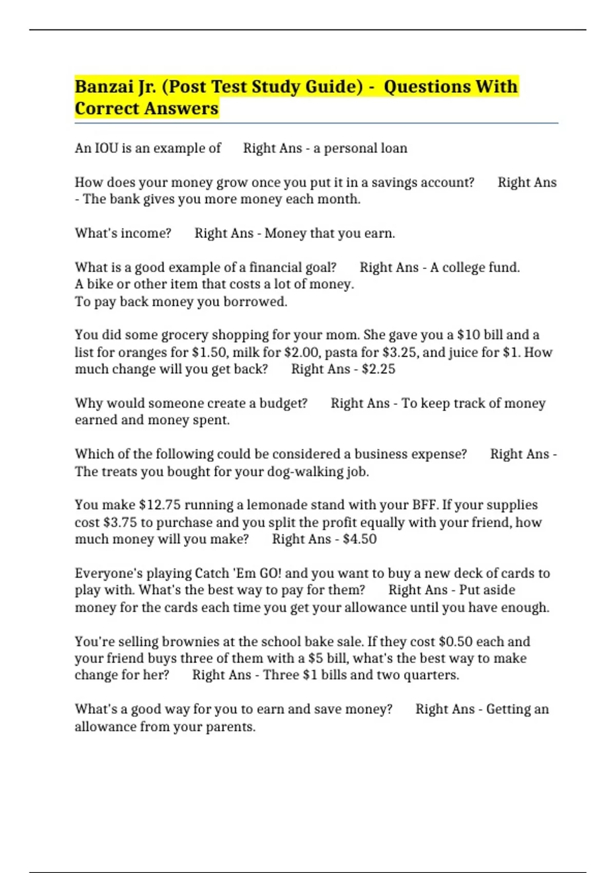 Why would someone create a budget? Right Ans - To keep track of money