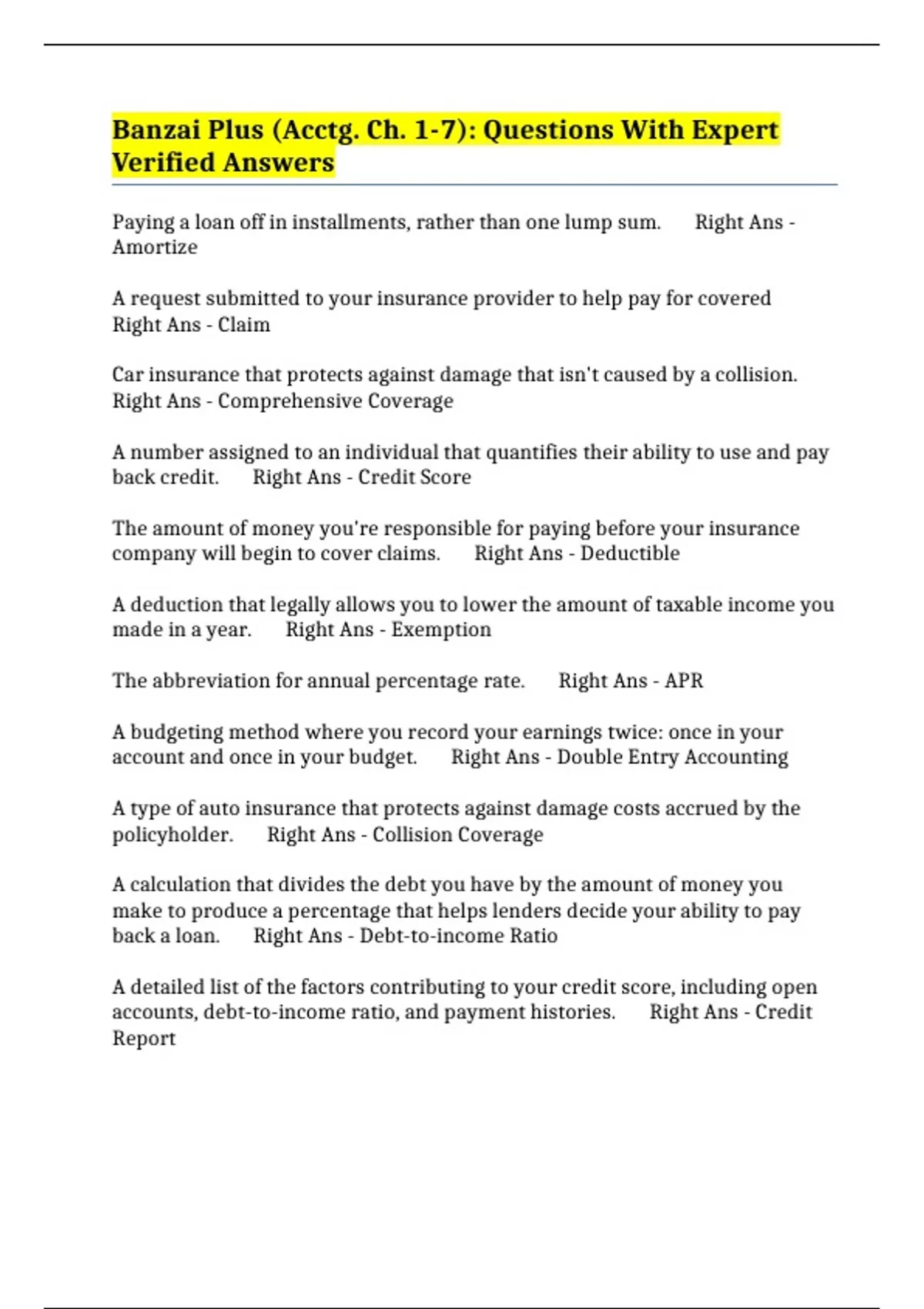 Paying a loan off in installments, rather than one lump sum. Right Ans -