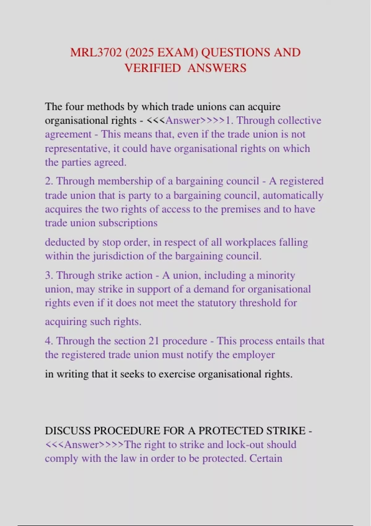 DISCUSS PROCEDURE FOR A PROTECTED STRIKE -