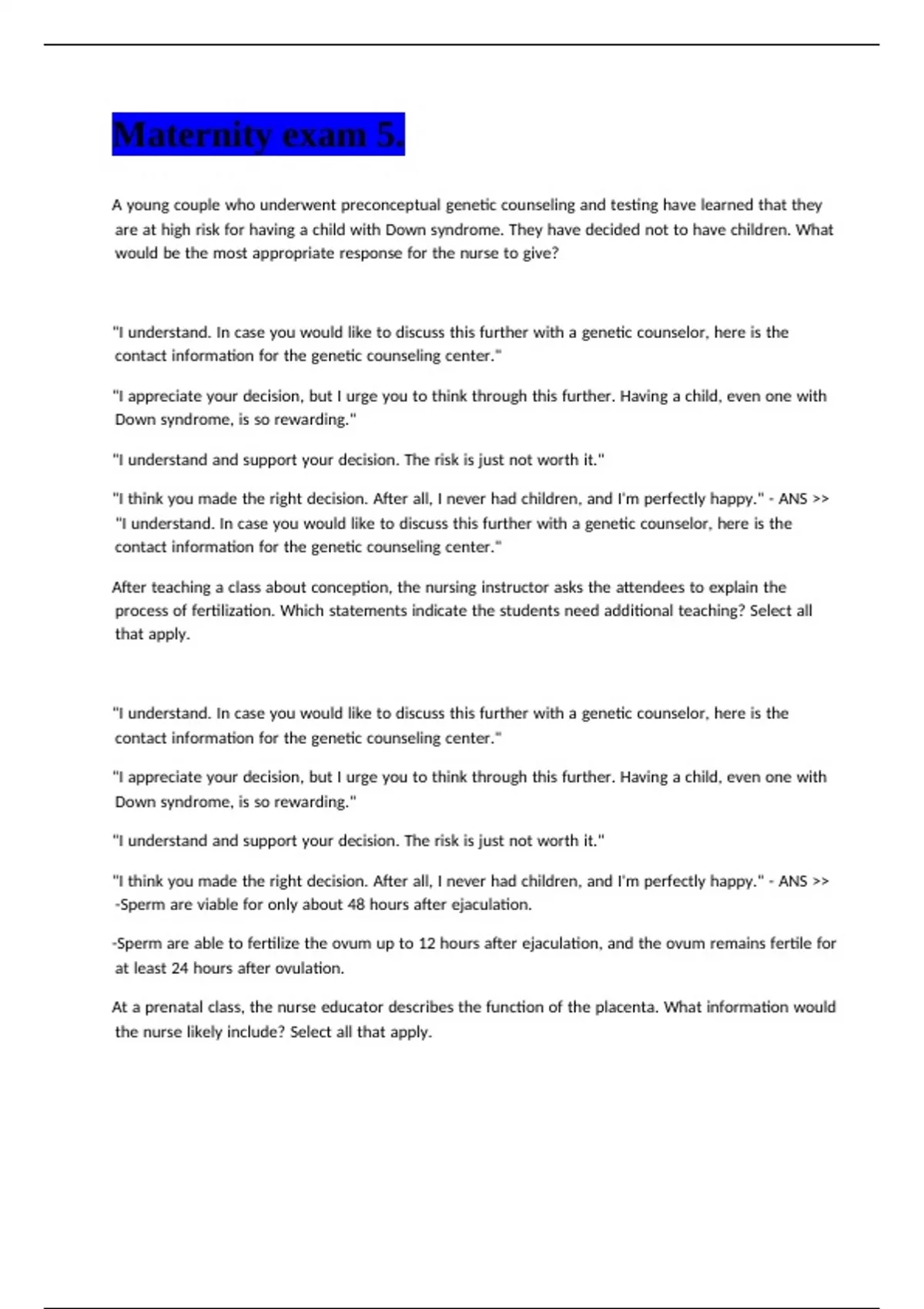 process of fertilization. Which statements indicate the students need additional teaching? Select all