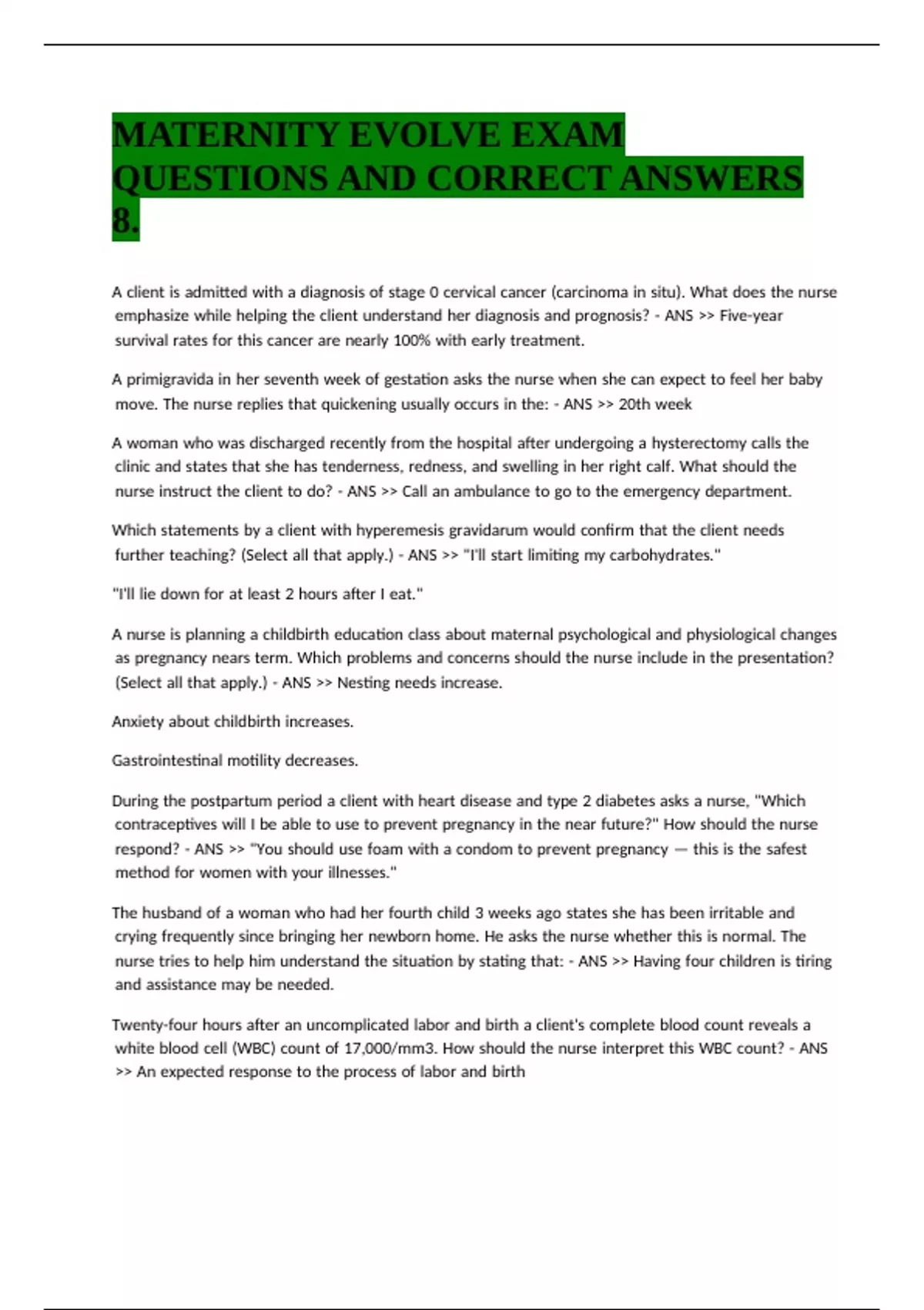MATERNITY EVOLVE EXAM