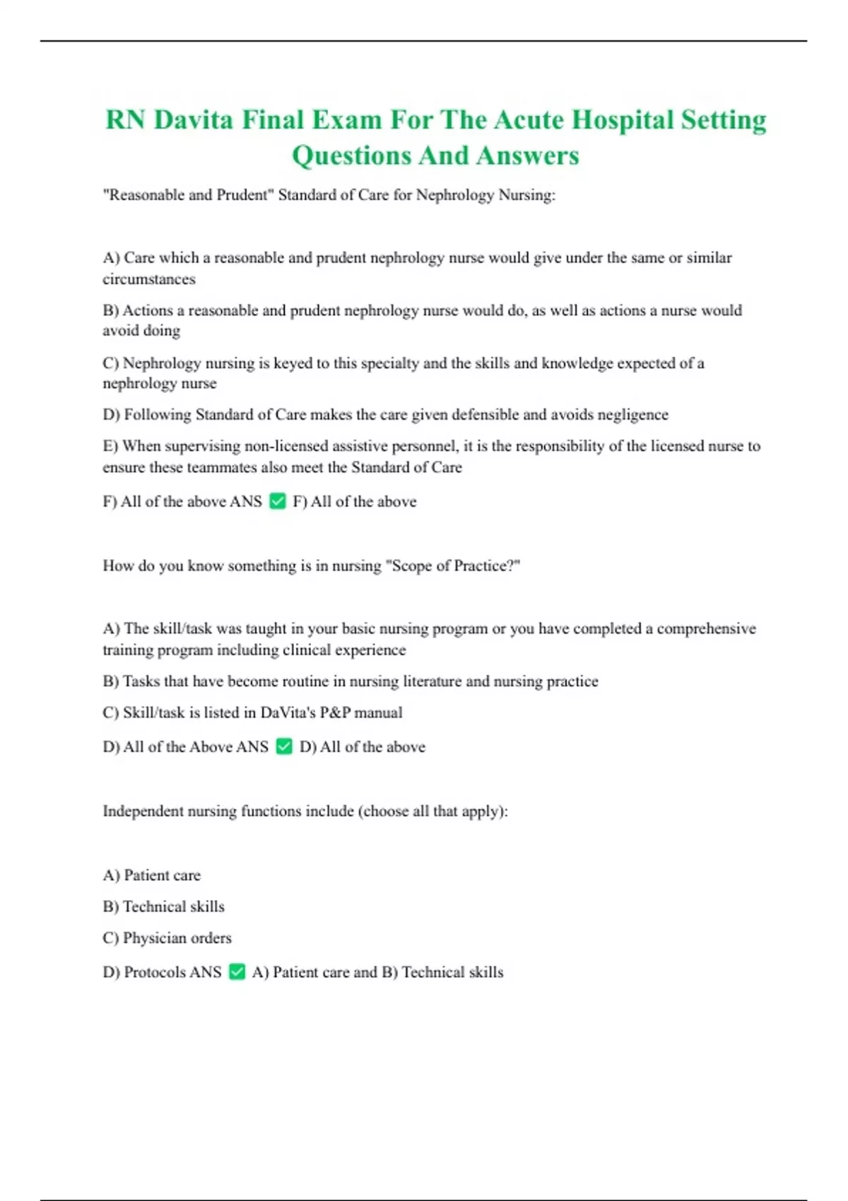 B) Actions a reasonable and prudent nephrology nurse would do, as well as actions a nurse would