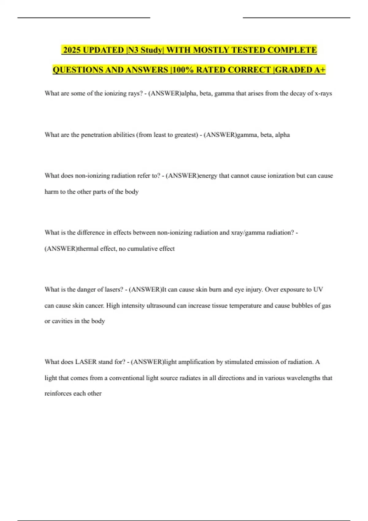 2025 UPDATED |N3 Study| WITH MOSTLY TESTED COMPLETE QUESTIONS AND ANSWERS |100% RATED CORRECT |GRADED A+
