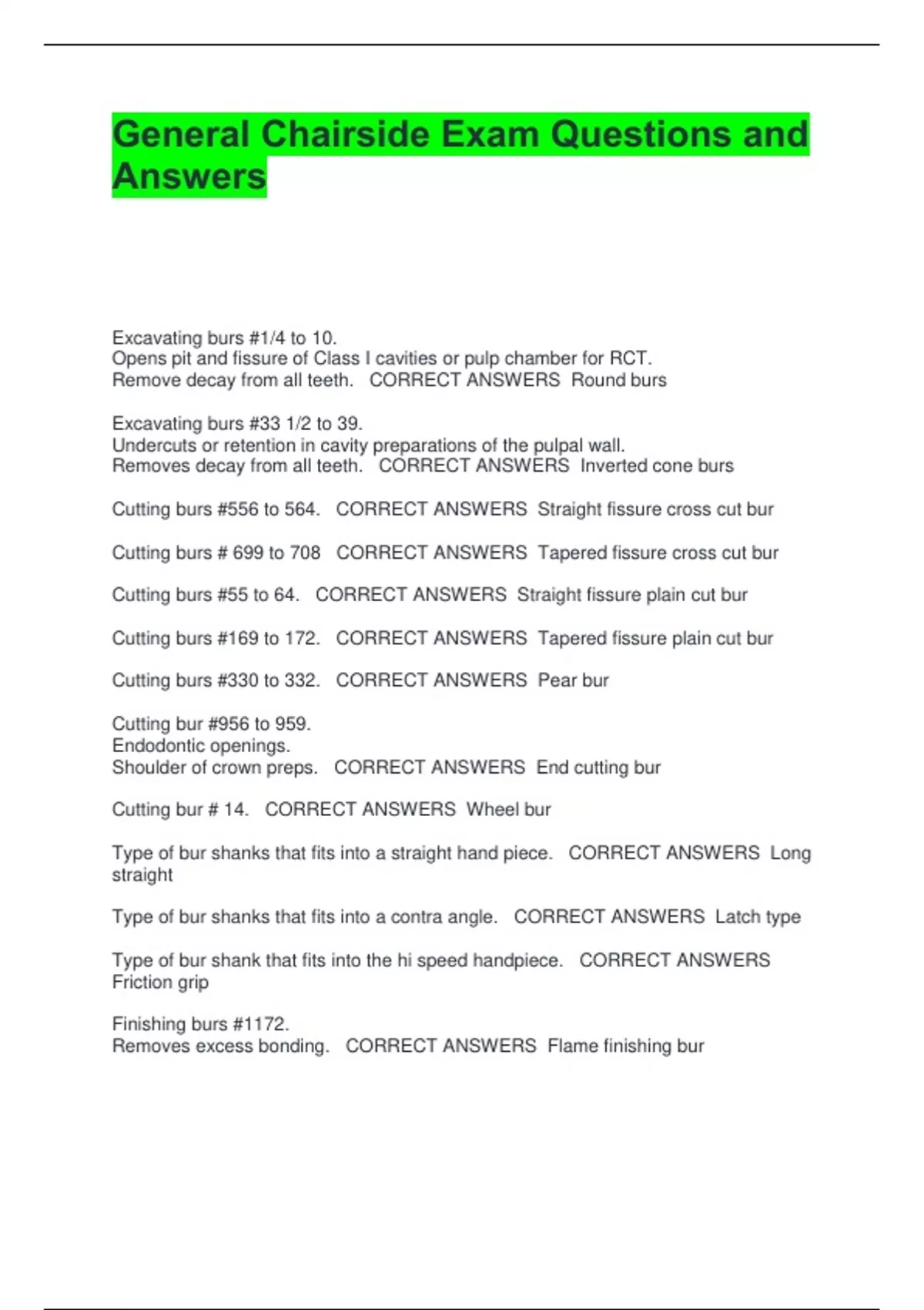 Cutting burs #55 to 64. CORRECT ANSWERS Straight fissure plain cut bur