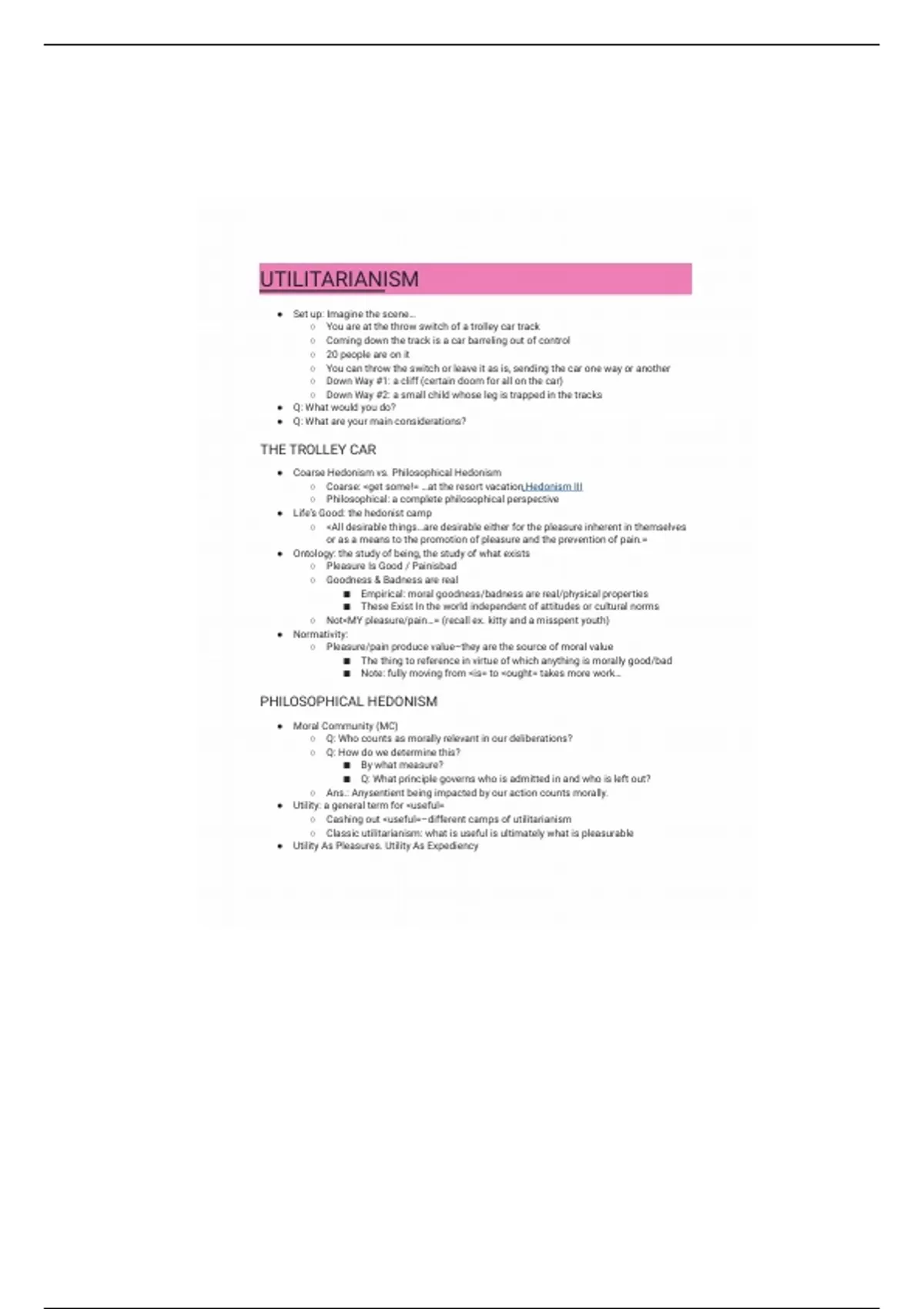 This is a comprehensive and detailed note on Utilitarianism for Philo 1100. An Essential Study Resource just for YOU!!