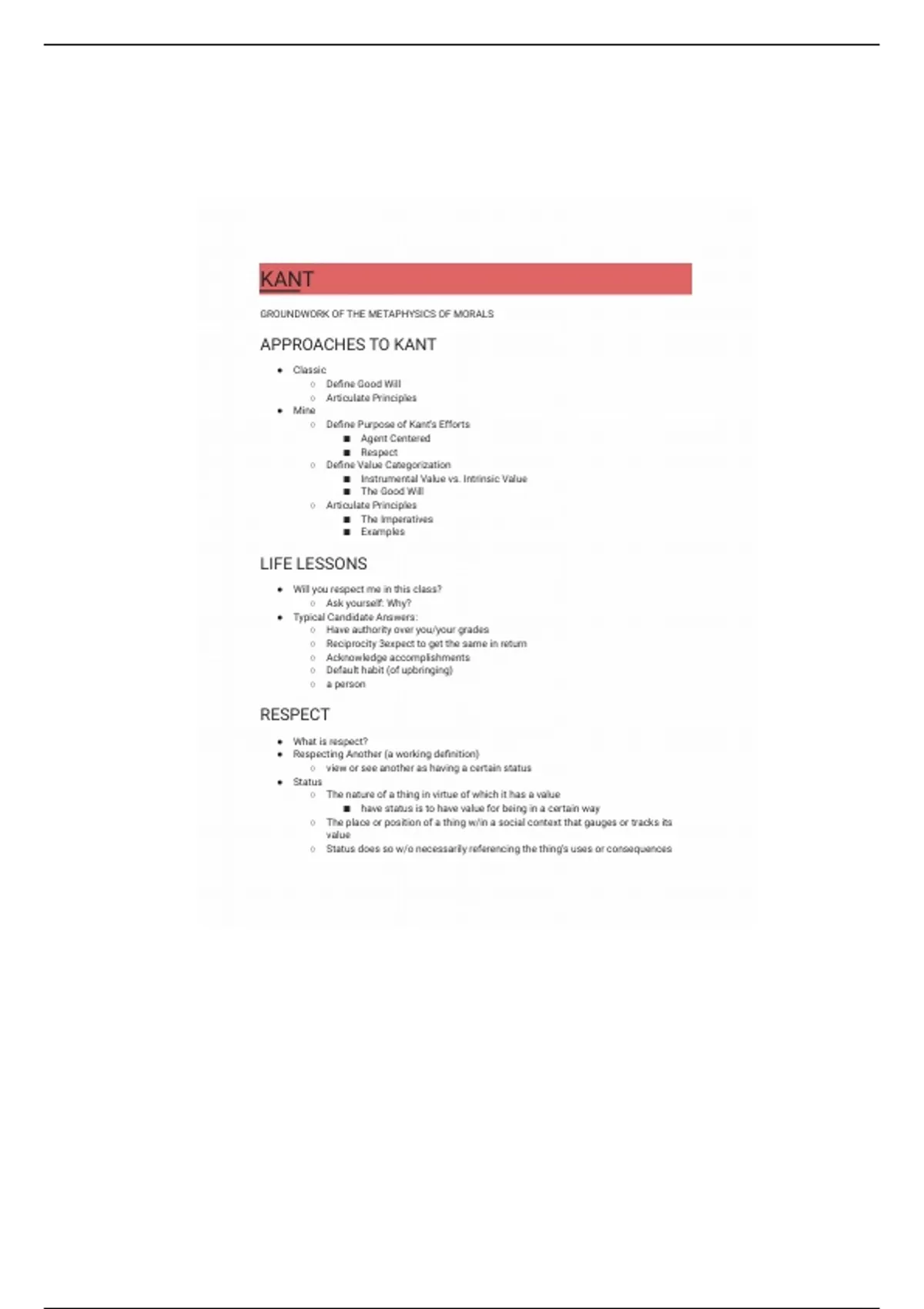 PHILO 1100 Immanuel Kant Lecture Notes