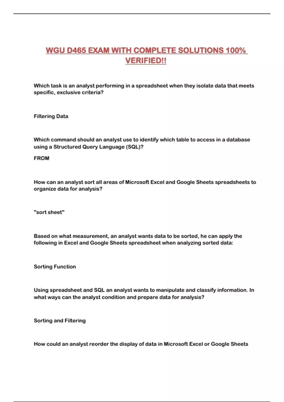 WGU D465 EXAM WITH COMPLETE SOLUTIONS 100%