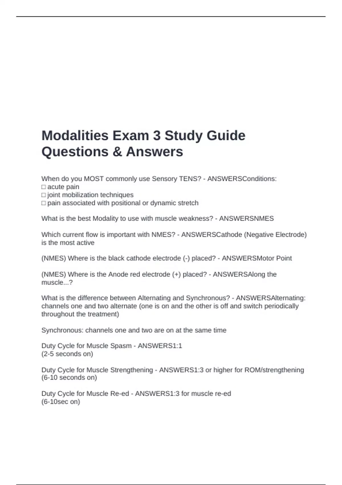 Duty Cycle for Muscle Re-ed - ANSWERS1:3 for muscle re-ed