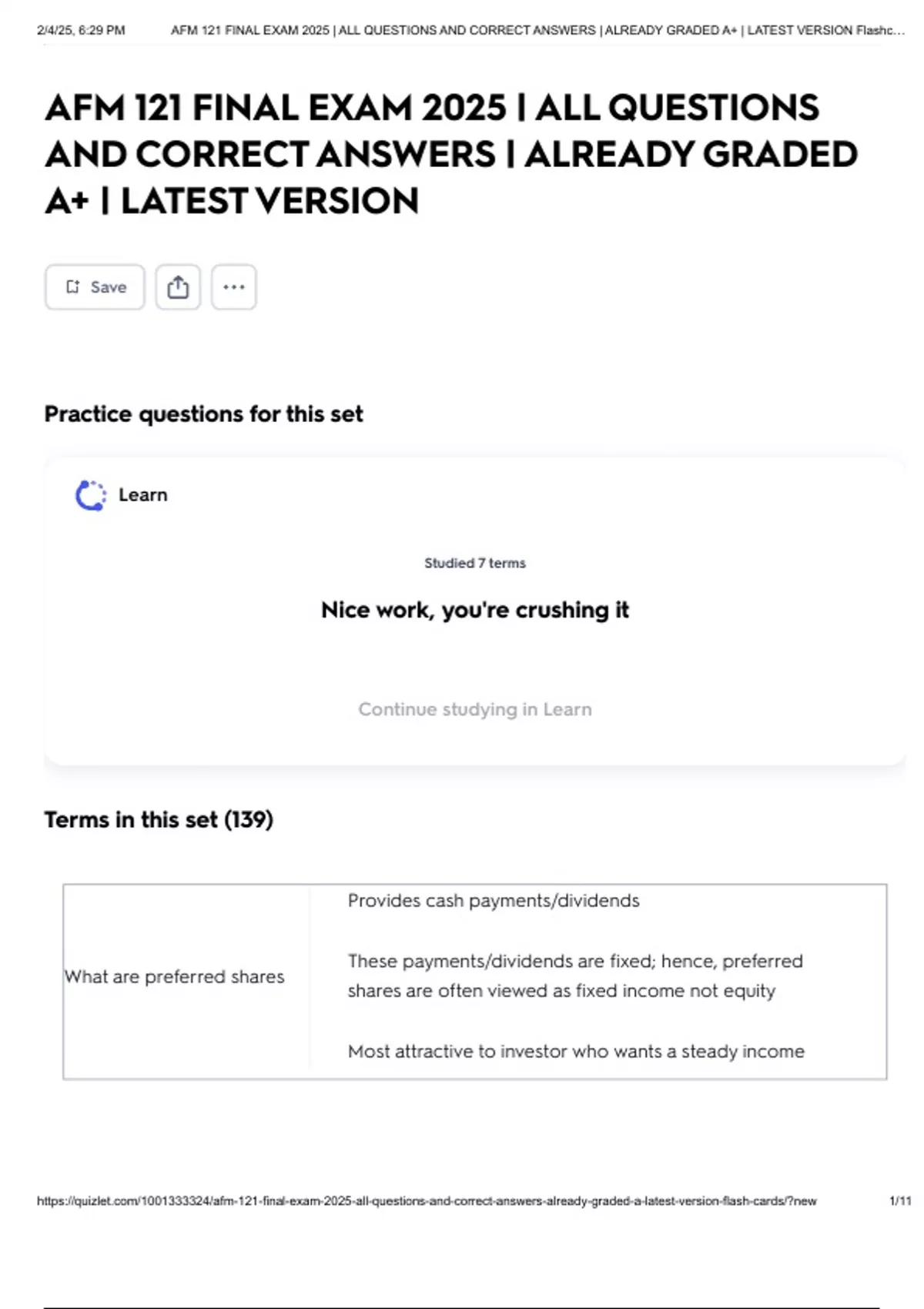 2/4/25, 6:29 PM AFM 121 FINAL EXAM 2025 | ALL QUESTIONS AND CORRECT ANSWERS | ALREADY GRADED A+ | LATEST VERSION Flashc…