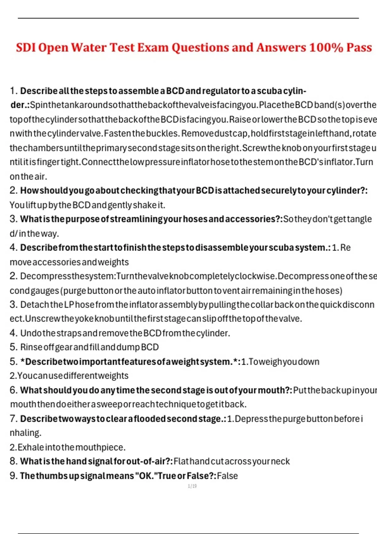1. Describe all the steps to assemble a BCD and regulator to a scuba cylin- j j j j j j j j j j j j j