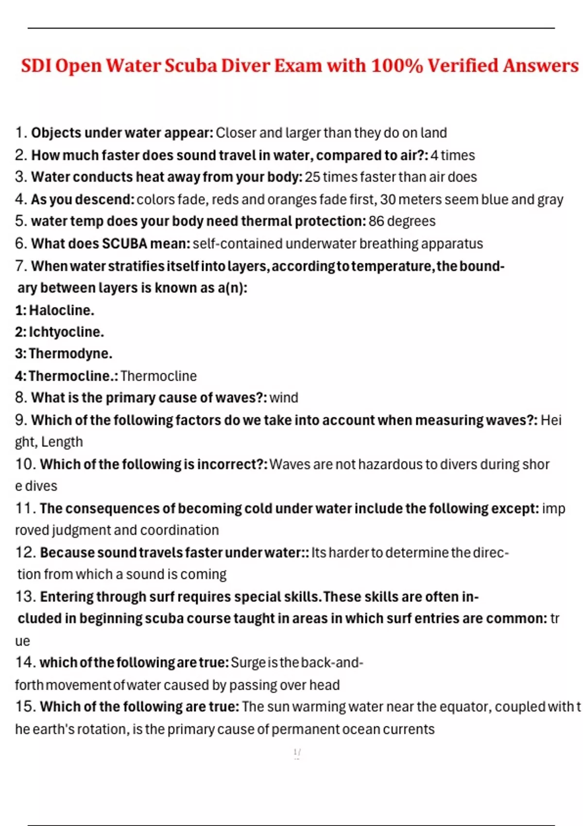1. Objects under water appear: Closer and larger than they do on land