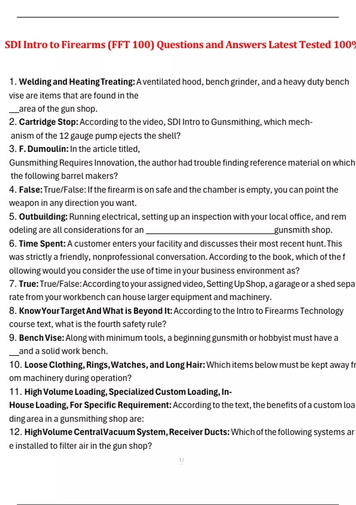 20. True: True/False: According to the video, SDI Intro to Gunsmithing, the 1911 firearm ca