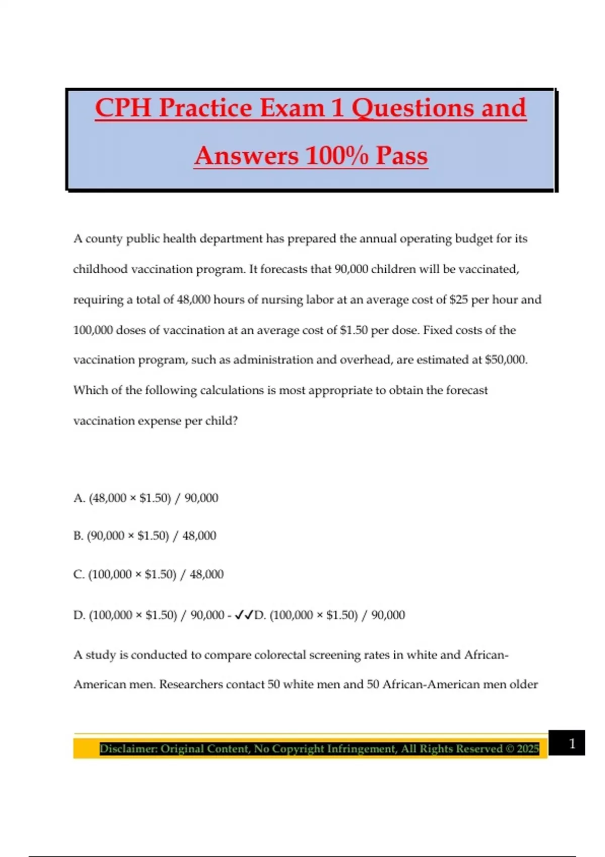 100,000 doses of vaccination at an average cost of $1.50 per dose. Fixed costs of the