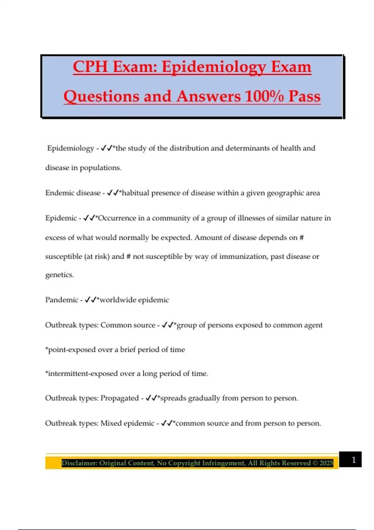 Prevalence - ✔✔*measure of the burden of disease in a community (new and pre-