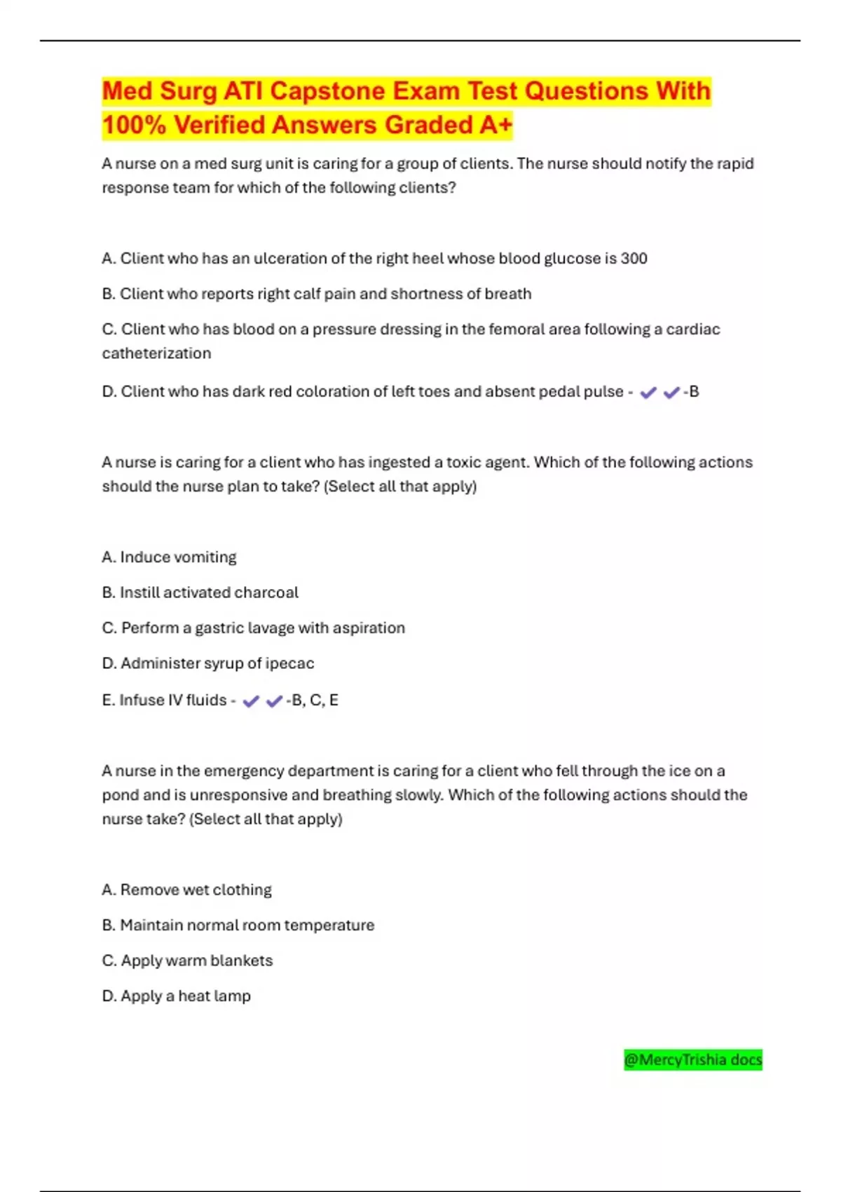 ,Med Surg ATI Capstone Exam Test Questions With