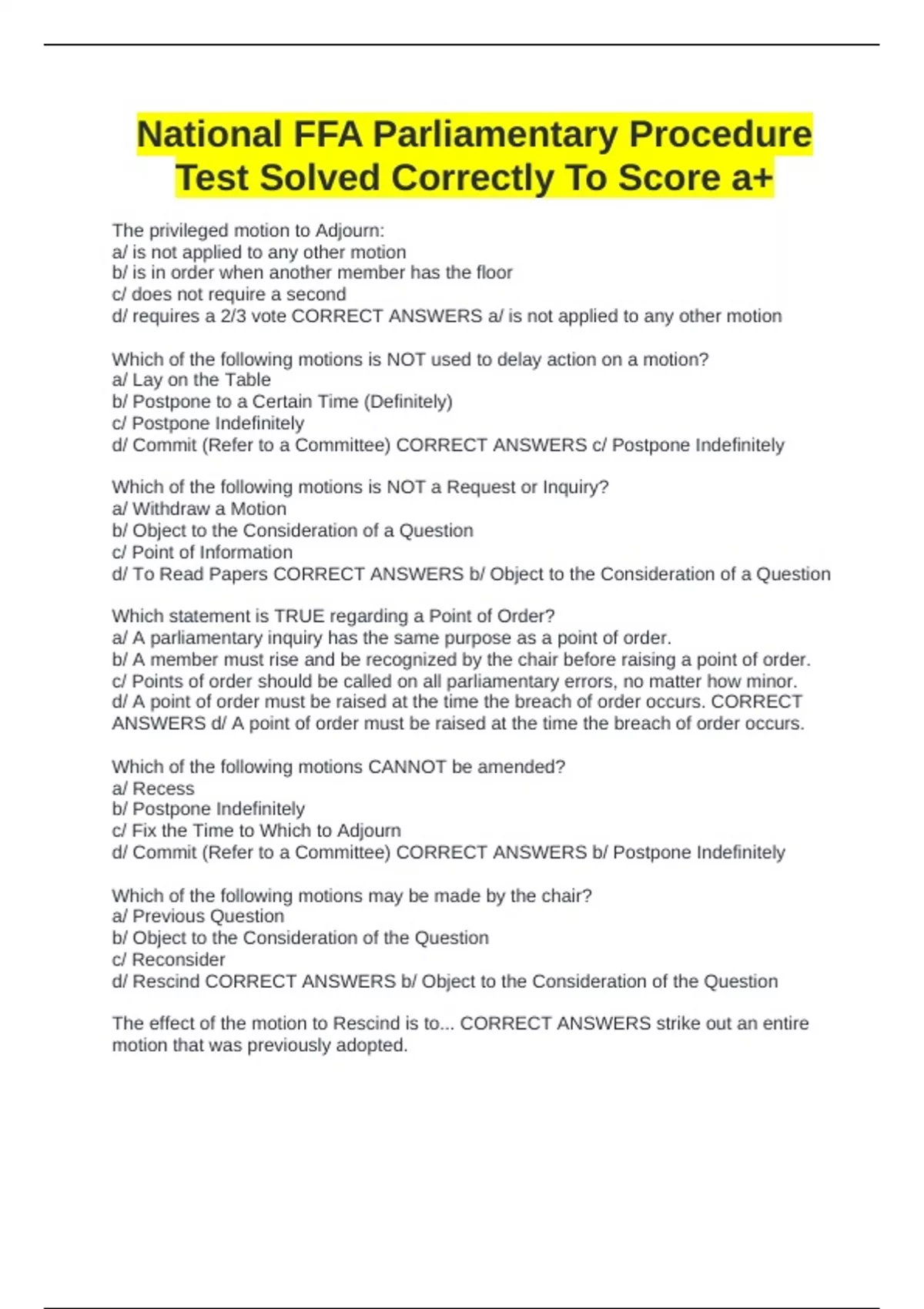 CORRECT ANSWERS c/ The motion was out of order because the delegates meet less