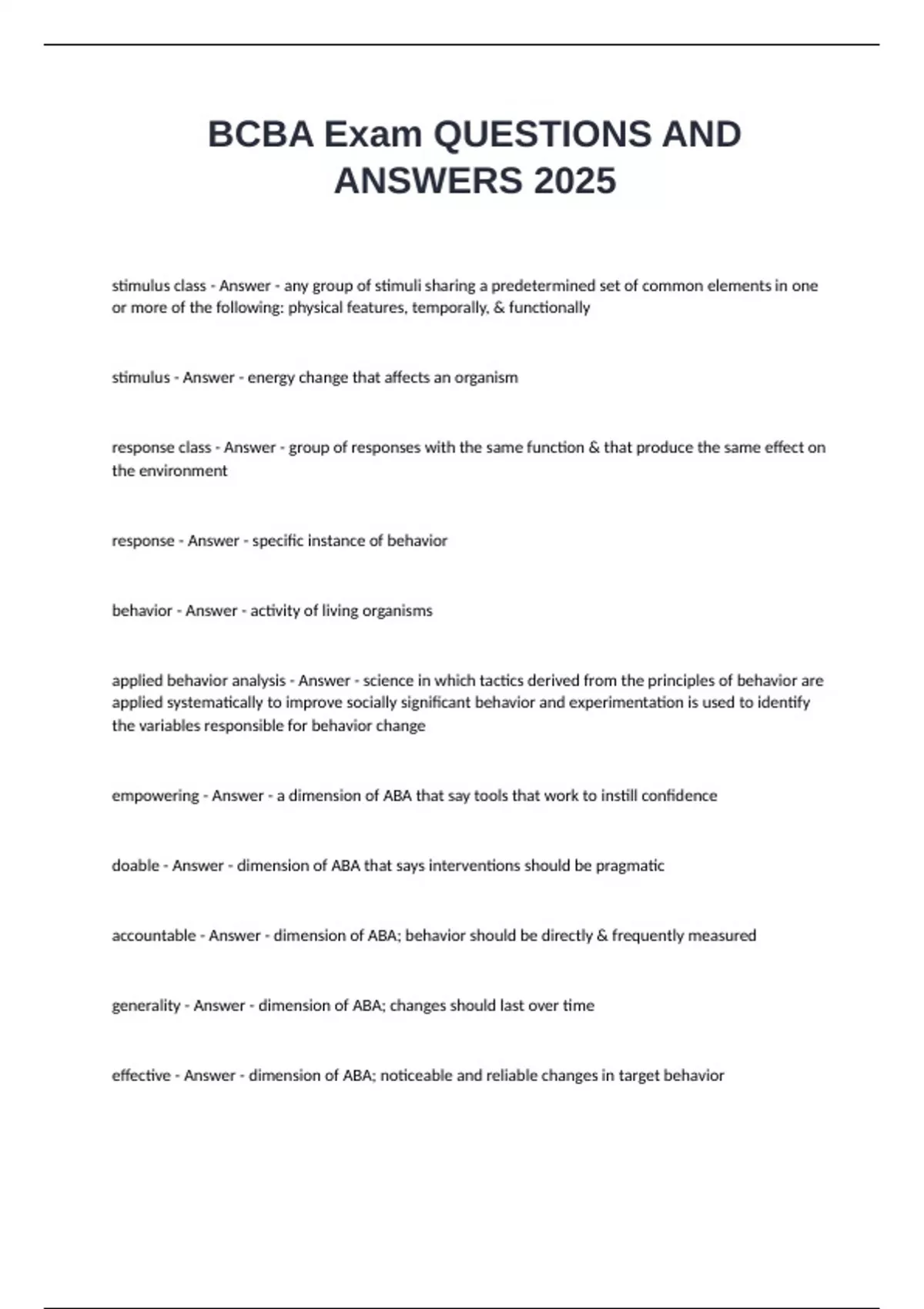 analytic - Answer - dimension of ABA; a functional relation between manipulated events and a reliable