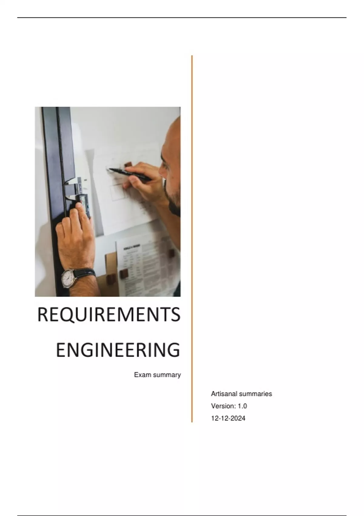 Tackling your Requirements Engineering midterm? Don’t waste time digging through endless materials—this expertly crafted summary gives you a clear, structured, and efficient way to study the key concepts you need! What’s Inside? Pohl’s Three Dimensions – Understanding Specification, Agreement & Systems Elicitation Techniques – Functional vs. Non-Functional Requirements The RE Process – How requirements evolve through spiral development Information Exchange – Known Knowns, Unknowns & Tacit Knowledge Quality of Requirements – Glinz Framework, Requirement Representation & Verification User Stories & Agile Methods – INVEST Framework, BDD, and QUS Framework Three Amigos Session – A structured way to refine and clarify user stories Why This Summary? Saves Time – Focuses only on the relevant topics for your midterm Clear & Well-Structured – Easy-to-read format with key insights Perfect for Quick Revisions – Ideal for last-minute study sessions Boosts Understanding & Retention – Designed to help you grasp concepts faster Get your copy now and walk into your midterm with confidence!