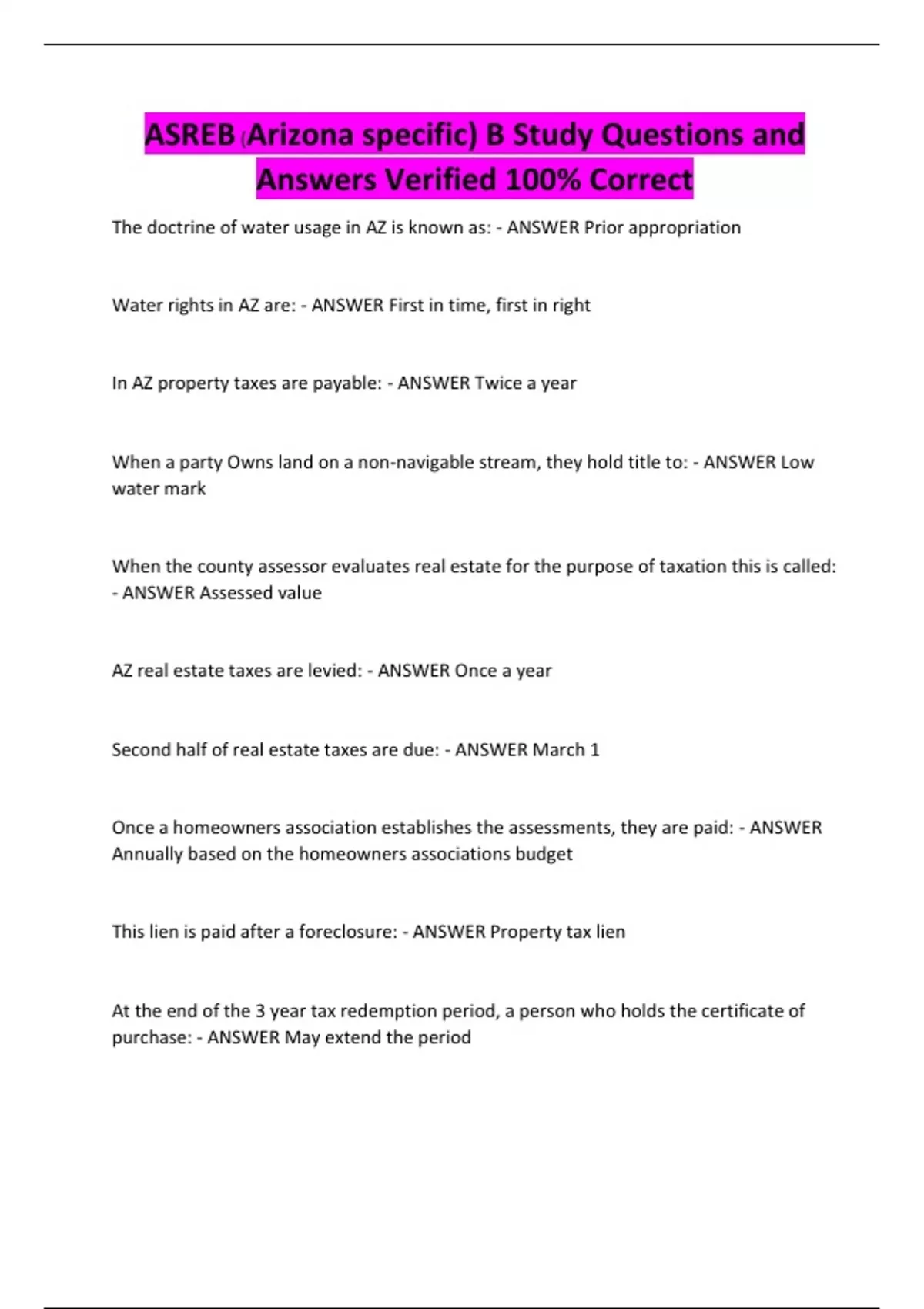 ASREB (Arizona specific) B Study Questions and