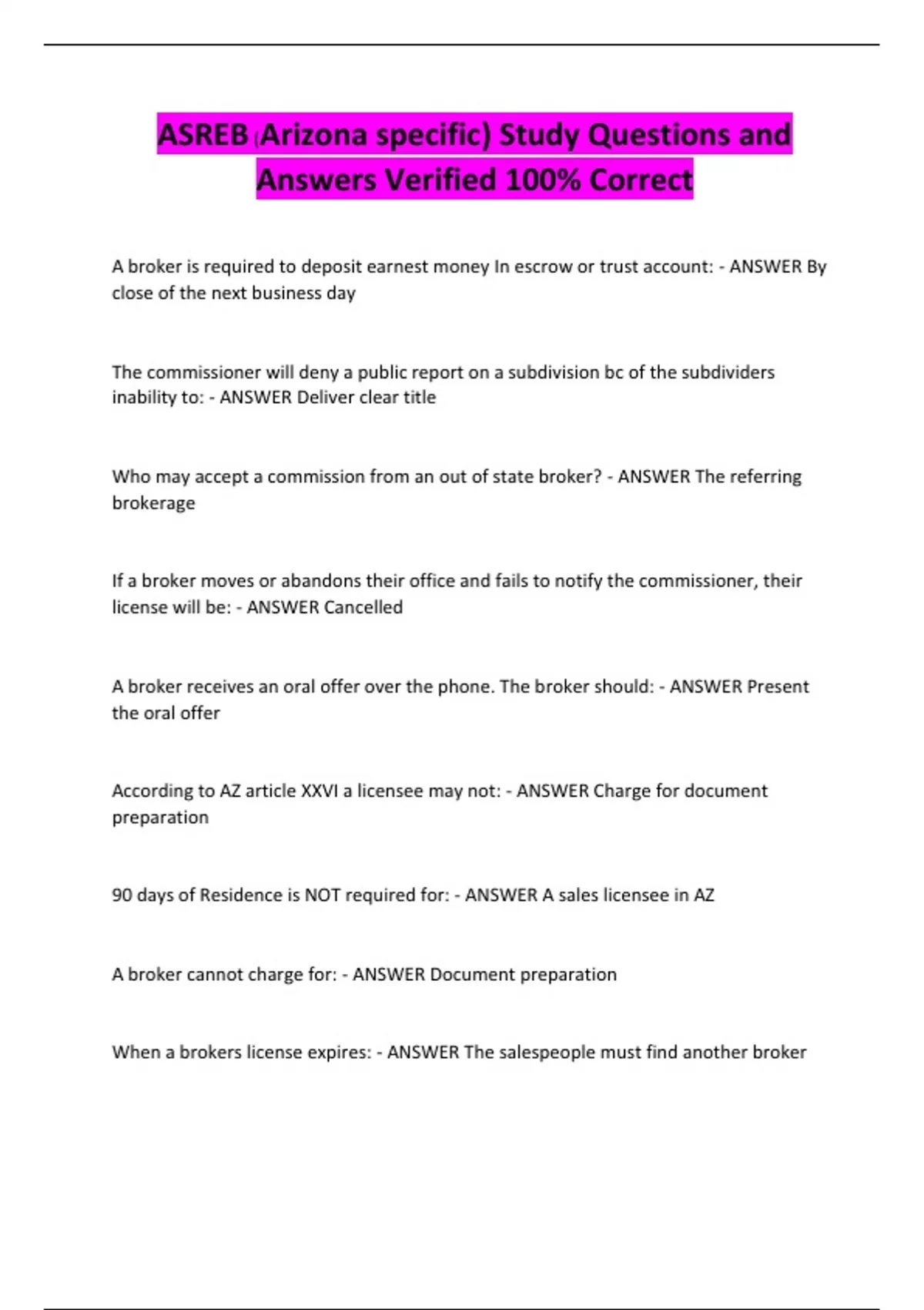 ASREB (Arizona specific) Study Questions and Answers Verified 100% Correct