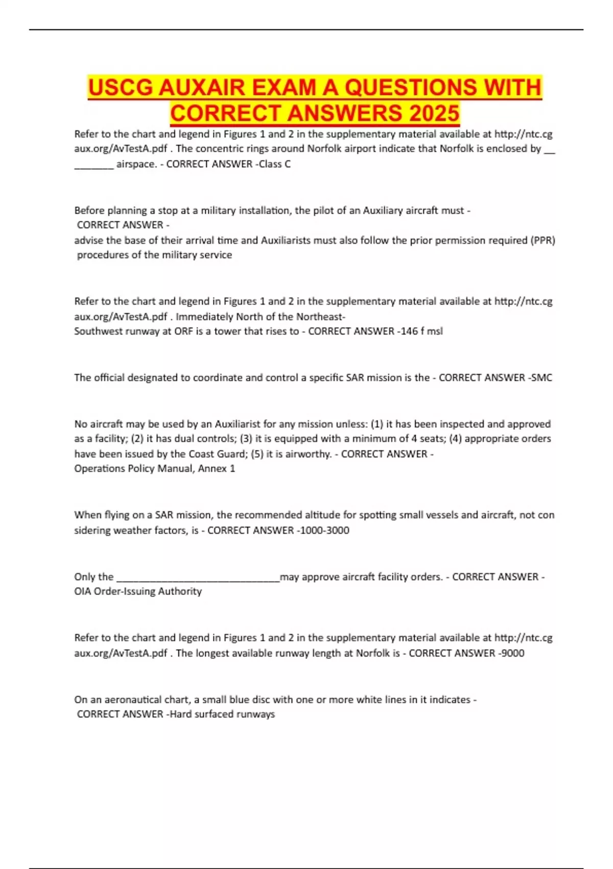 USCG AUXAIR EXAM A QUESTIONS WITH