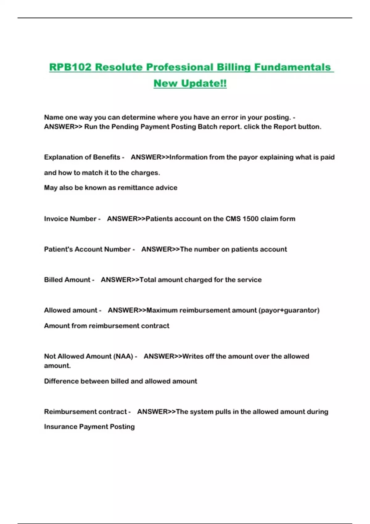 RPB102 Resolute Professional Billing Fundamentals New Update!!...