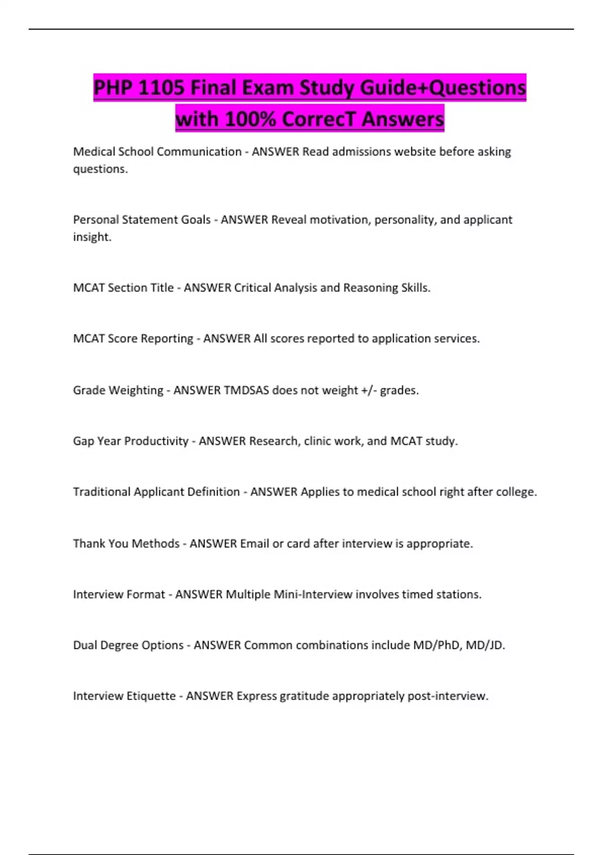 PHP 1105 Final Exam Study Guide+Questions