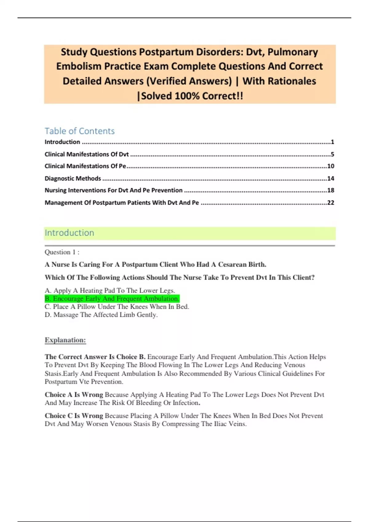Choice A Is Wrong Because Applying A Heating Pad To The Lower Legs Does Not Prevent Dvt
