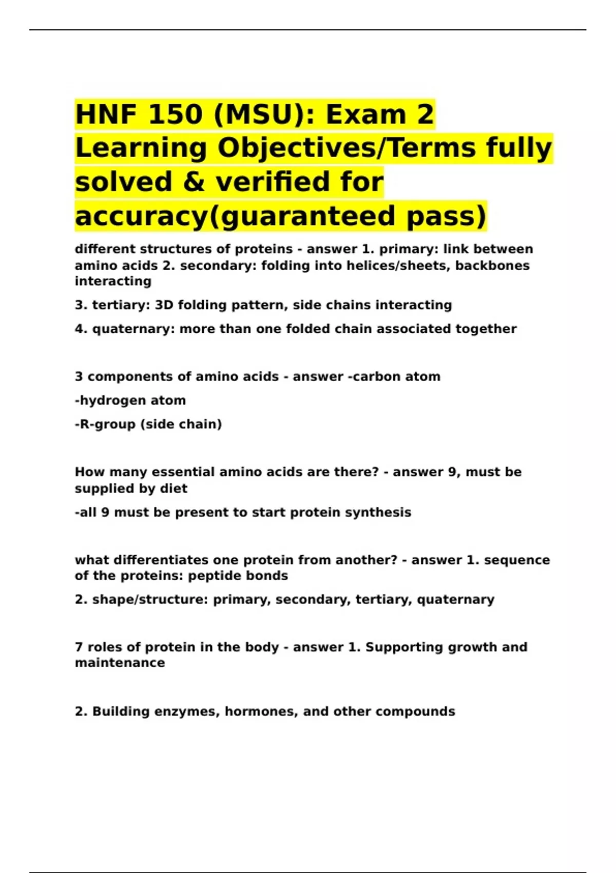 HNF 150 (MSU) Exam 2 Learning Objectives Terms fully solved & verified for accuracy(guaranteed pass)