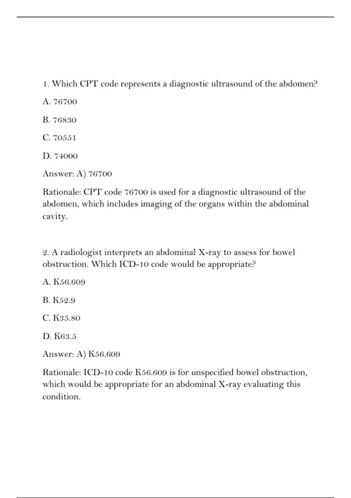 1. Which CPT code represents a diagnostic ultrasound of the abdomen?
