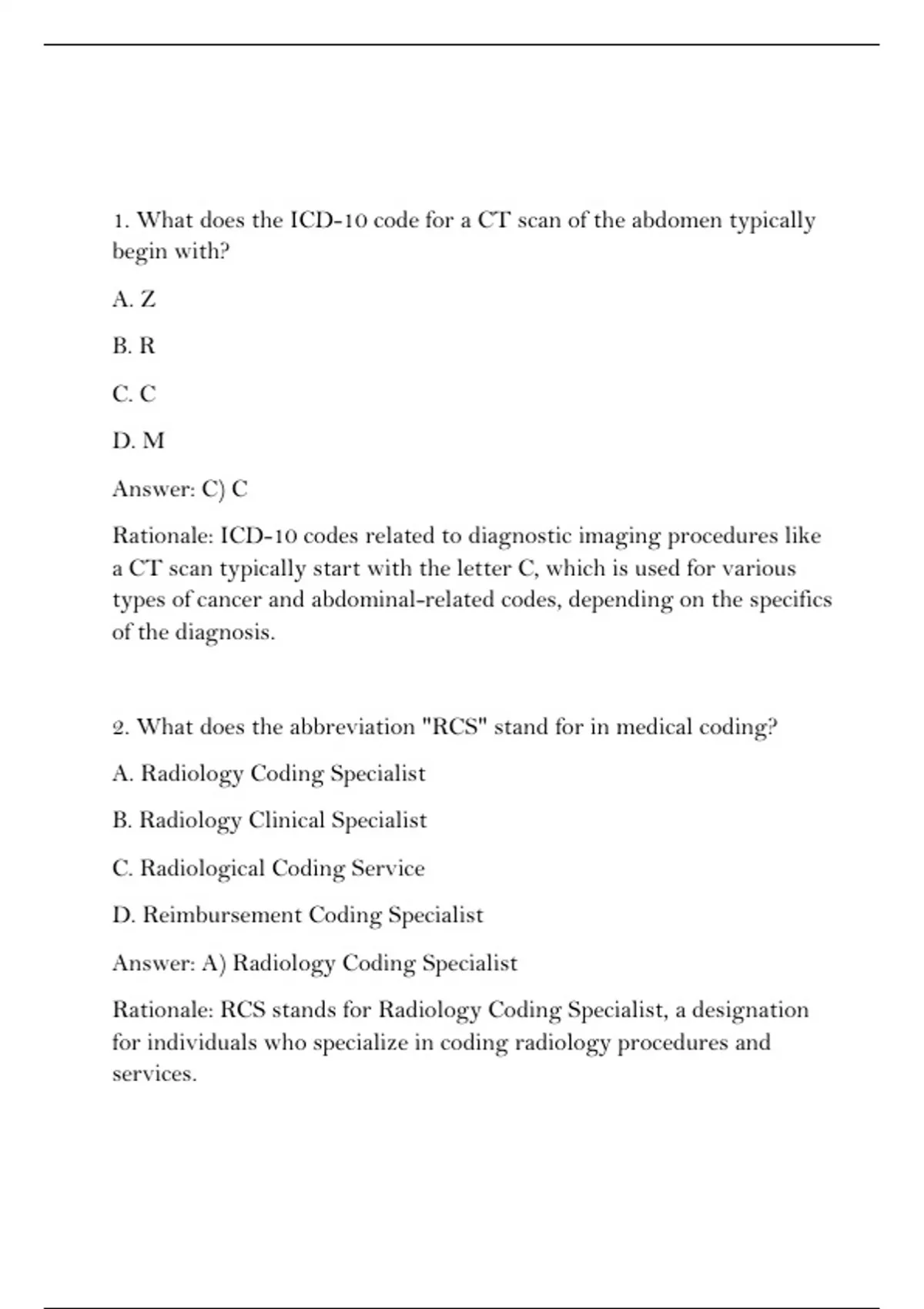 Rationale: RCS stands for Radiology Coding Specialist, a designation