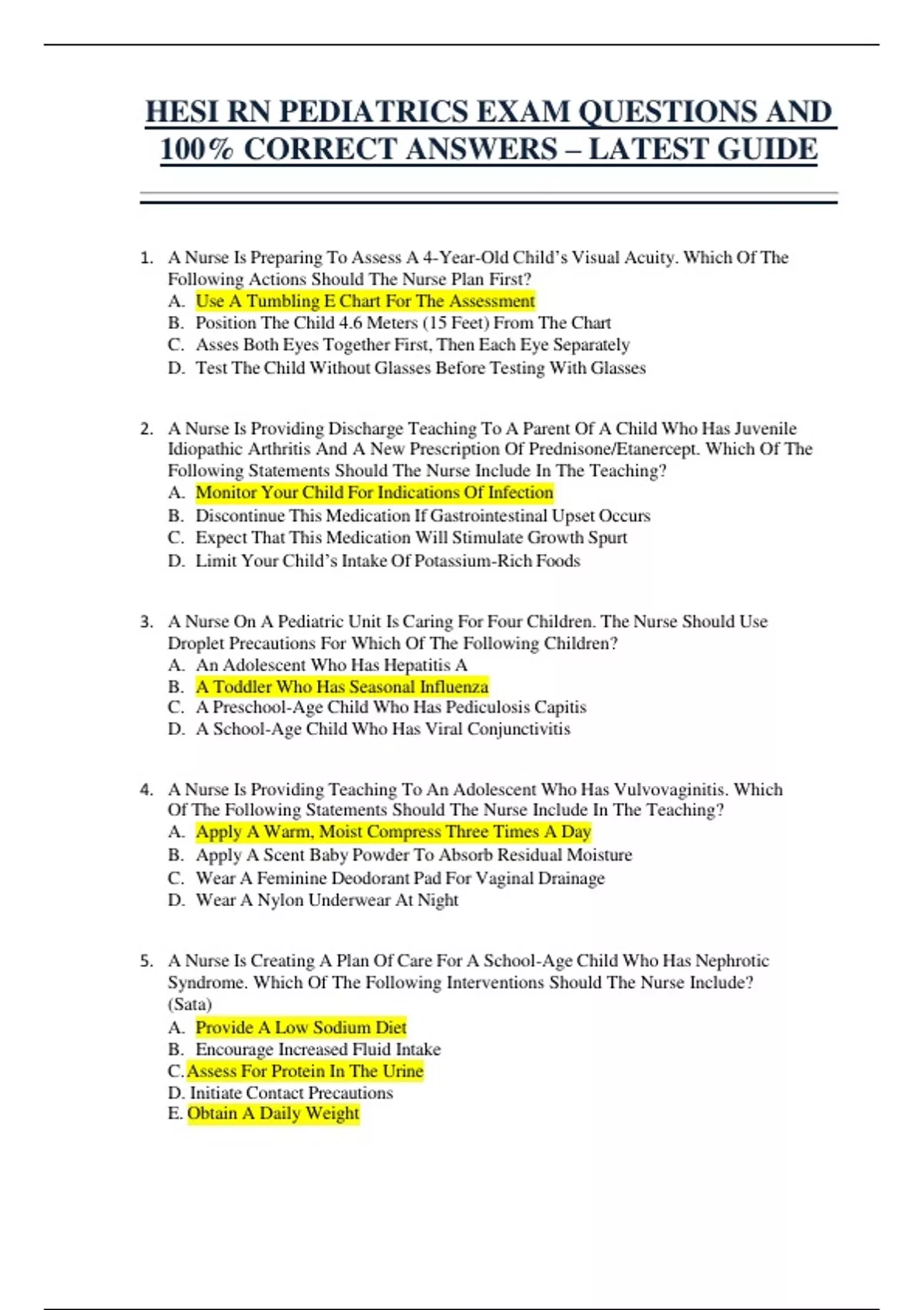 1. A Nurse Is Preparing To Assess A 4-Year-Old Child’s Visual Acuity. Which Of The