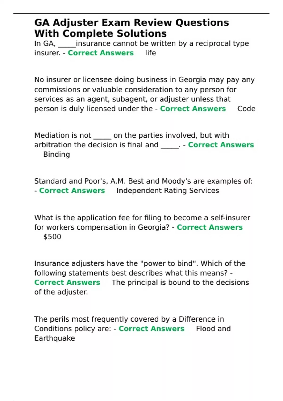 GA Adjuster Exam Review Questions With Complete Solutions.
