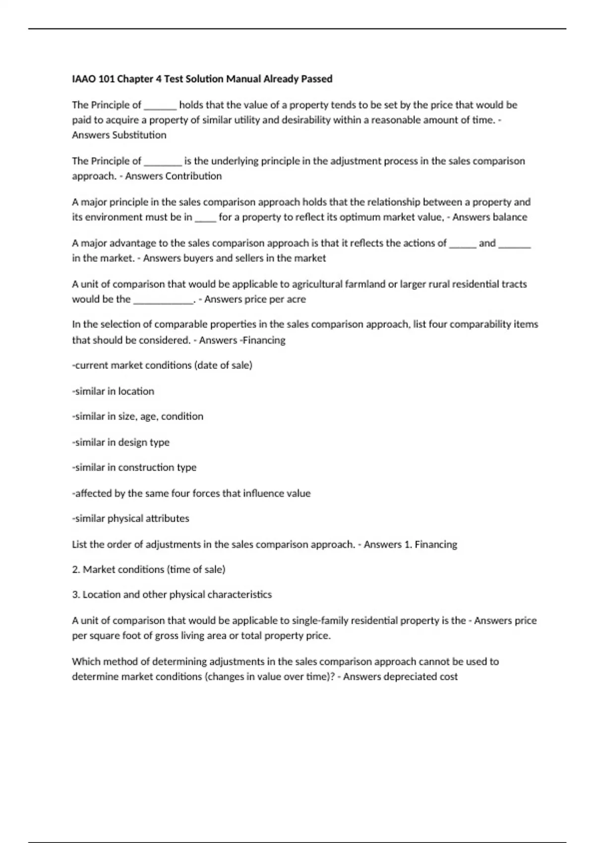 A major principle in the sales comparison approach holds that the relationship between a property and