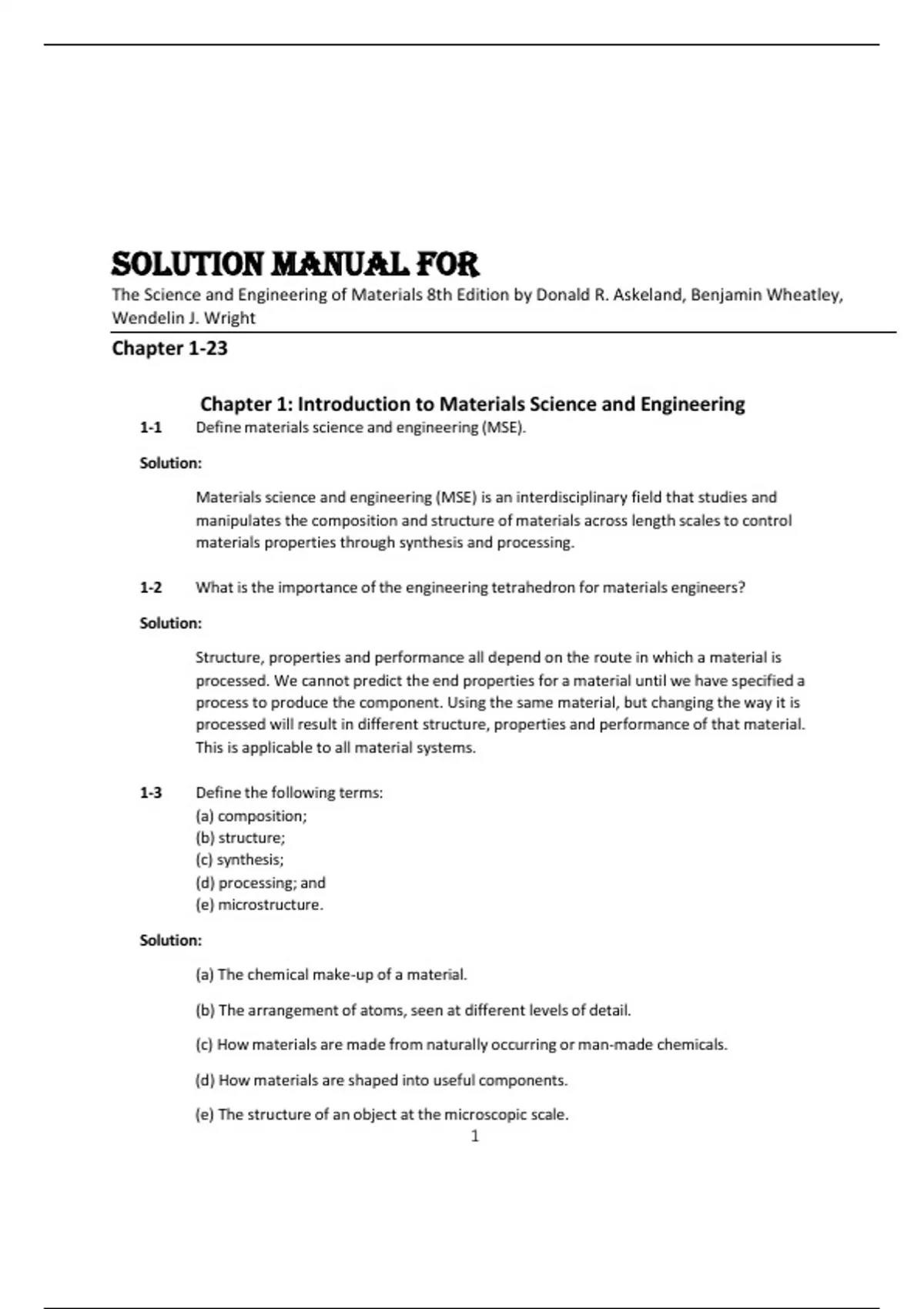 Solution Manual For The Science and Engineering of Materials 8th Edition by Donald R. Askeland, Benjamin Wheatley, Wendelin J. Wright Chapter 1-23 ISBN-13 978-8214011869