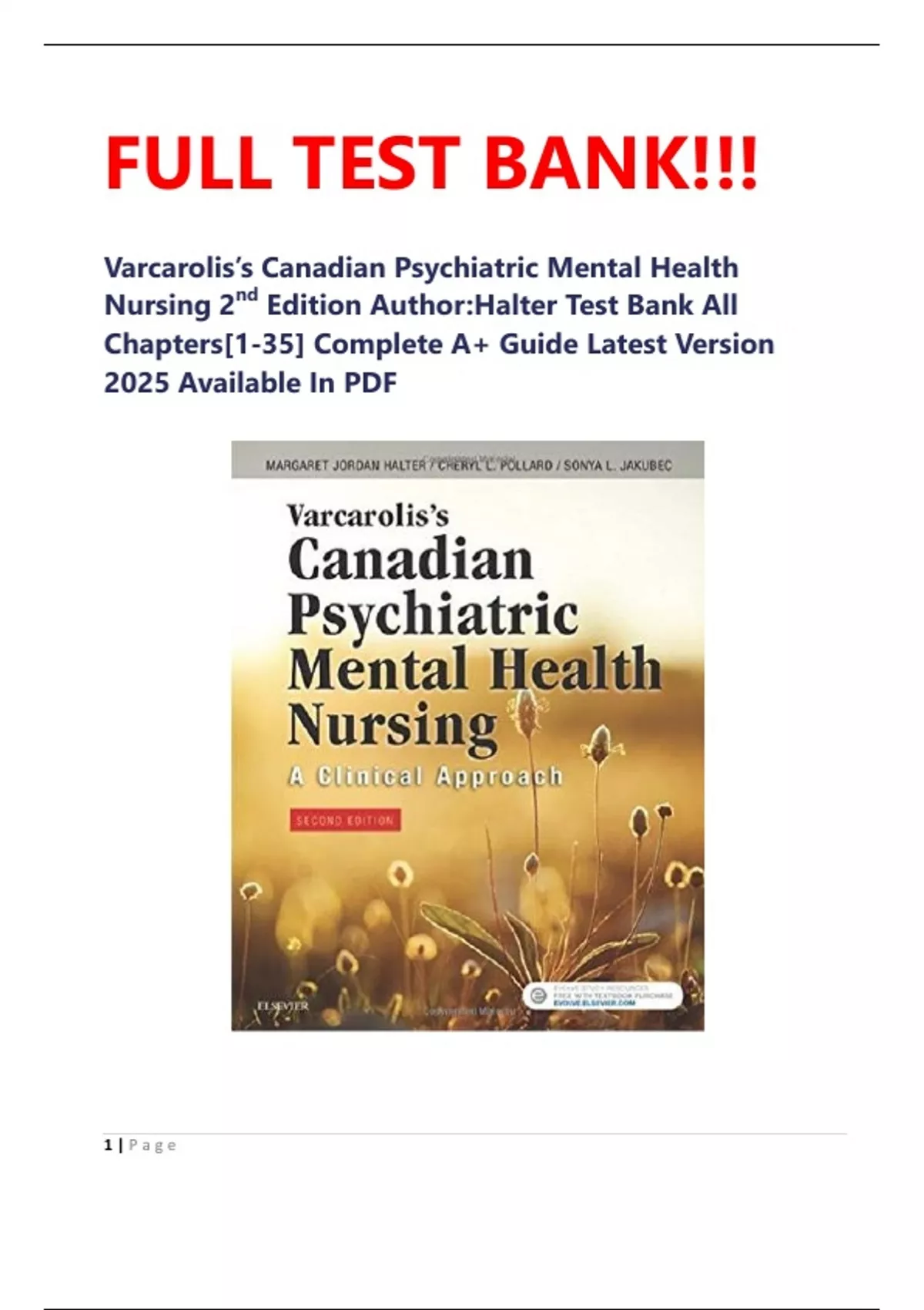 Varcarolis’s Canadian Psychiatric Mental Health Nursing 2nd Edition Author:Halter Test Bank All Chapters[1-35] Complete A+ Guide Latest Version 2025 Available In PDF