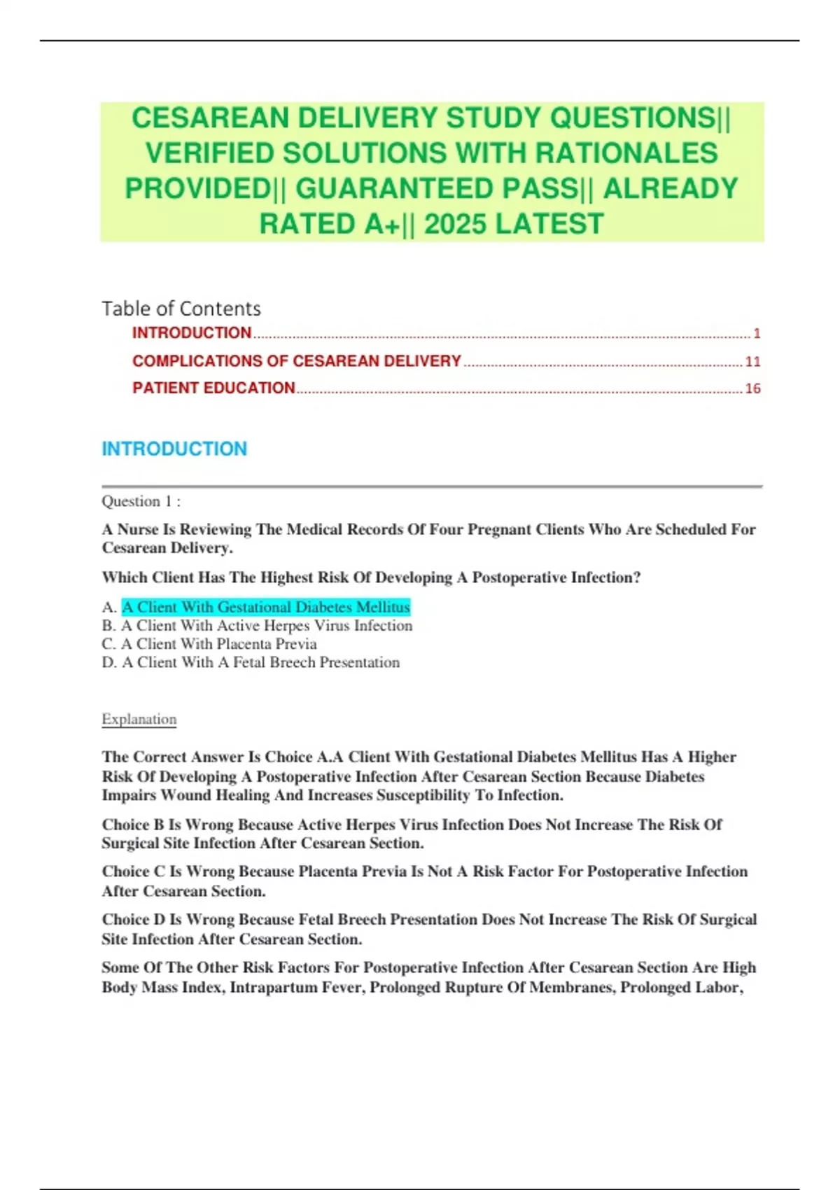 CESAREAN DELIVERY STUDY QUESTIONS||
