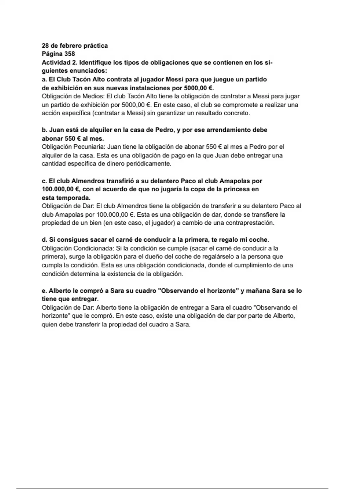 horizonte" que le compró. En este caso, existe una obligación de dar por parte de Alberto,