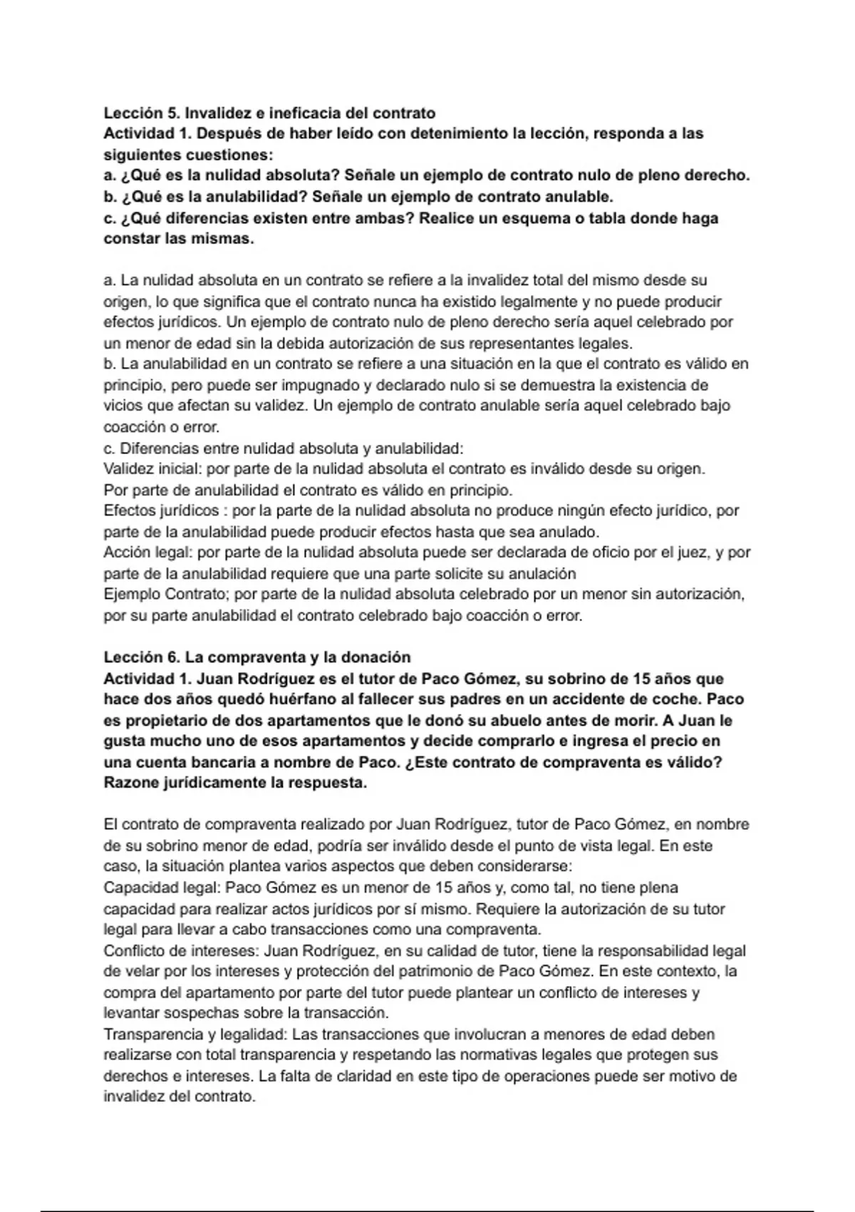 El contrato de compraventa realizado por Juan Rodríguez, tutor de Paco Gómez, en nombre