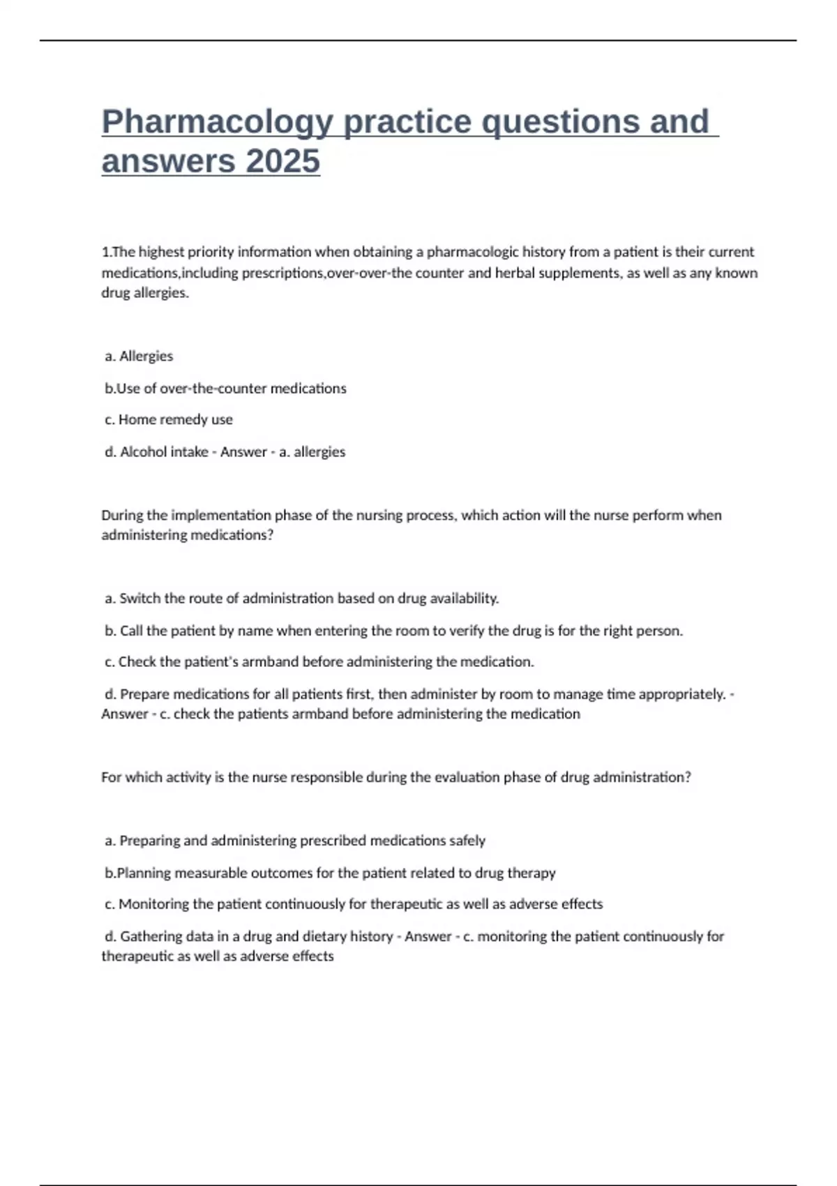 Answer - c. check the patients armband before administering the medication