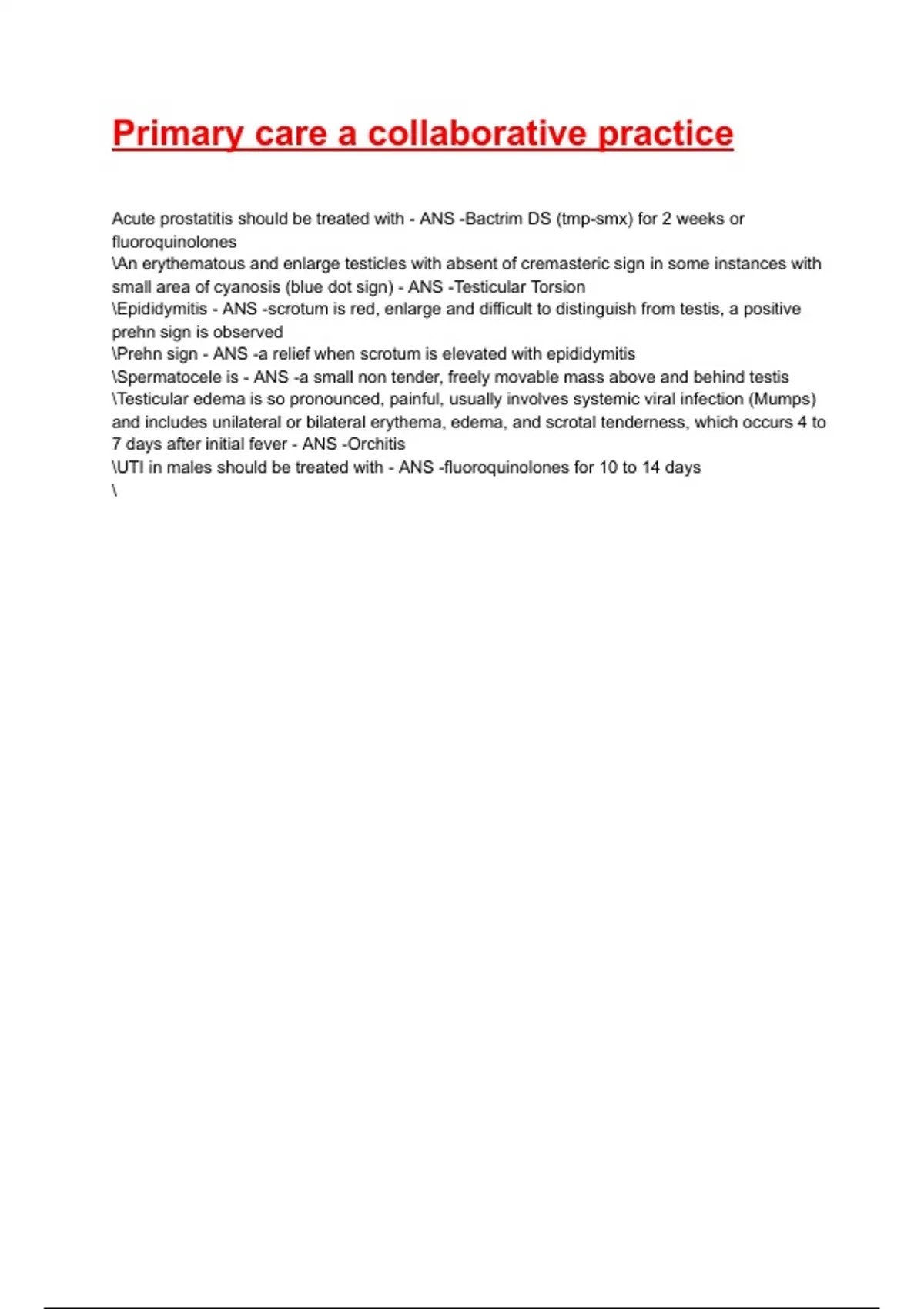 Acute prostatitis should be treated with - ANS -Bactrim DS (tmp-smx) for 2 weeks or